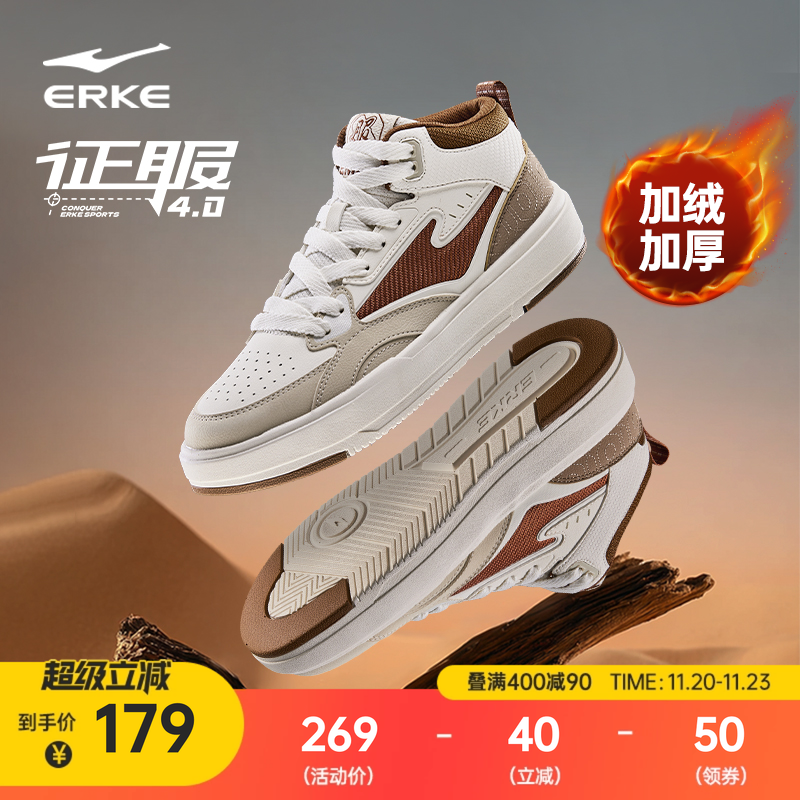 Conquer Hongxing Erke men's shoes sneakers, winter new big cotton shoes, fleece men's shoes, high-top thickened board shoes