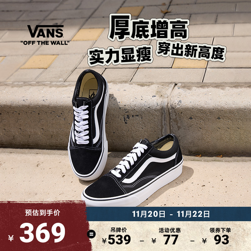 Vans official Old Skool Platform cool black platform heightened men's and women's shoe board shoes low top