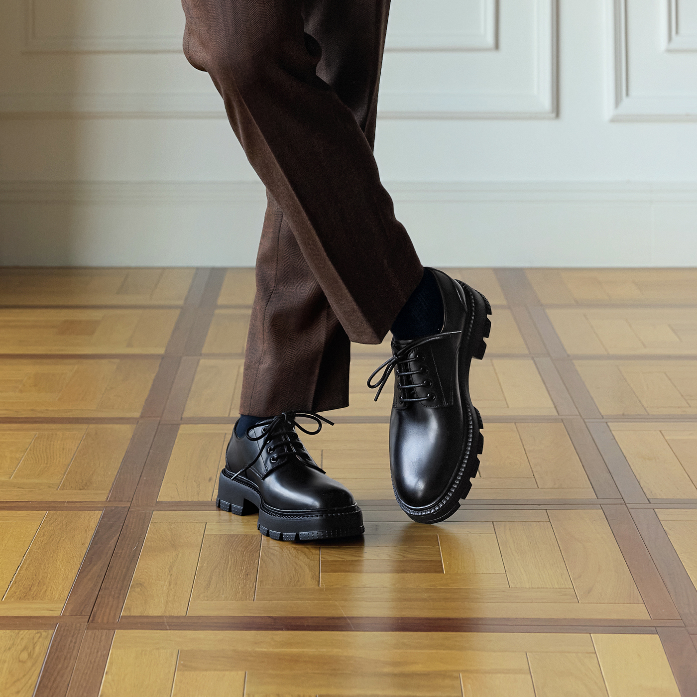 Round toe double flash structure derby leather shoes daily commuting height increase versatile TERRAINCOGNITA