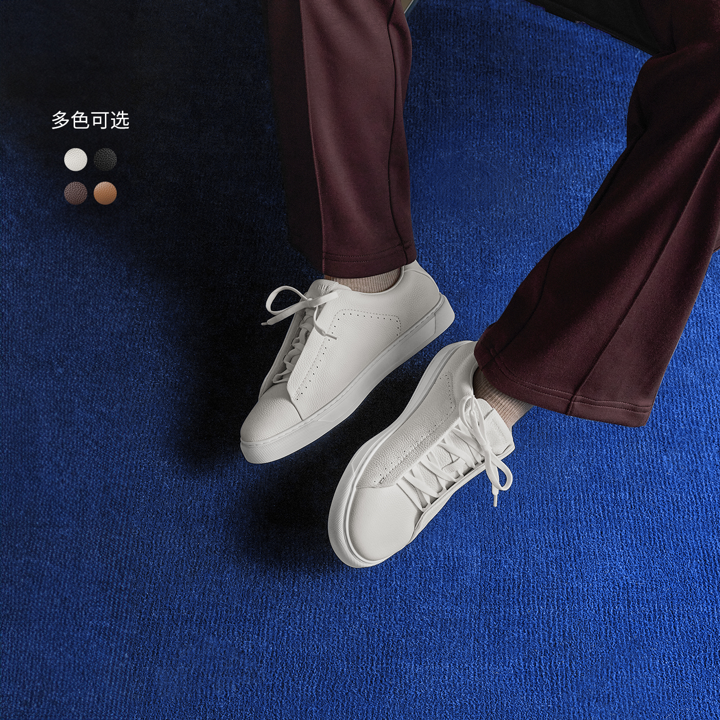 【One foot slip-on】ThomWills board shoes men's leather heightening white shoes versatile casual shoes winter