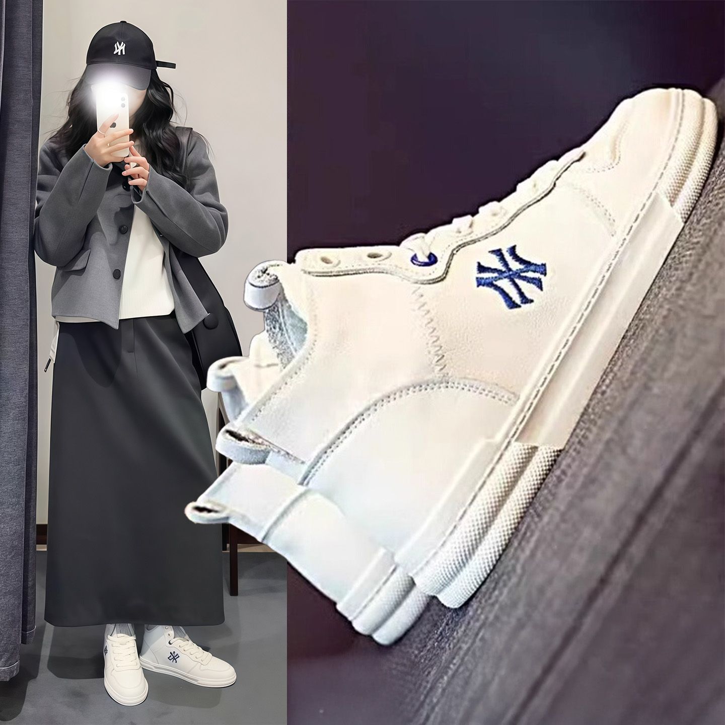 New 2025 inner height-increasing shoes women's high-top color-blocking round toe flat casual shoes autumn and winter Velcro sneakers for women