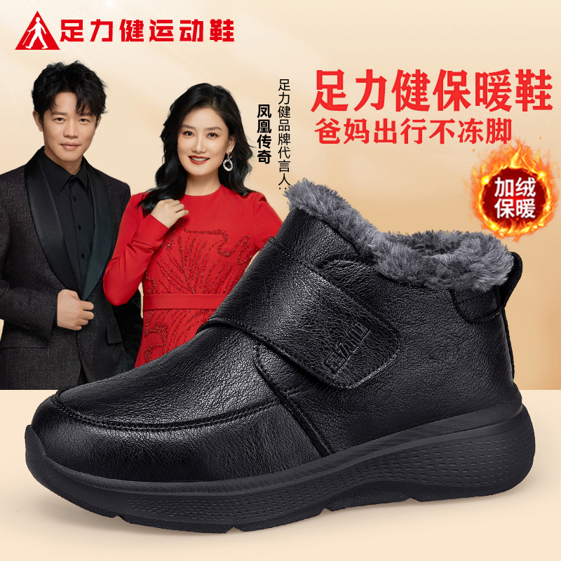 Cotton boots for men and women 2024 winter old Beijing fleece thickened cotton shoes middle-aged and elderly one-foot anti-ski boots large size