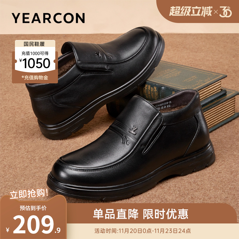 Yierkang men's shoes 2025 new winter genuine leather fleece warm men's high-top leather shoes middle-aged and elderly dad cotton shoes