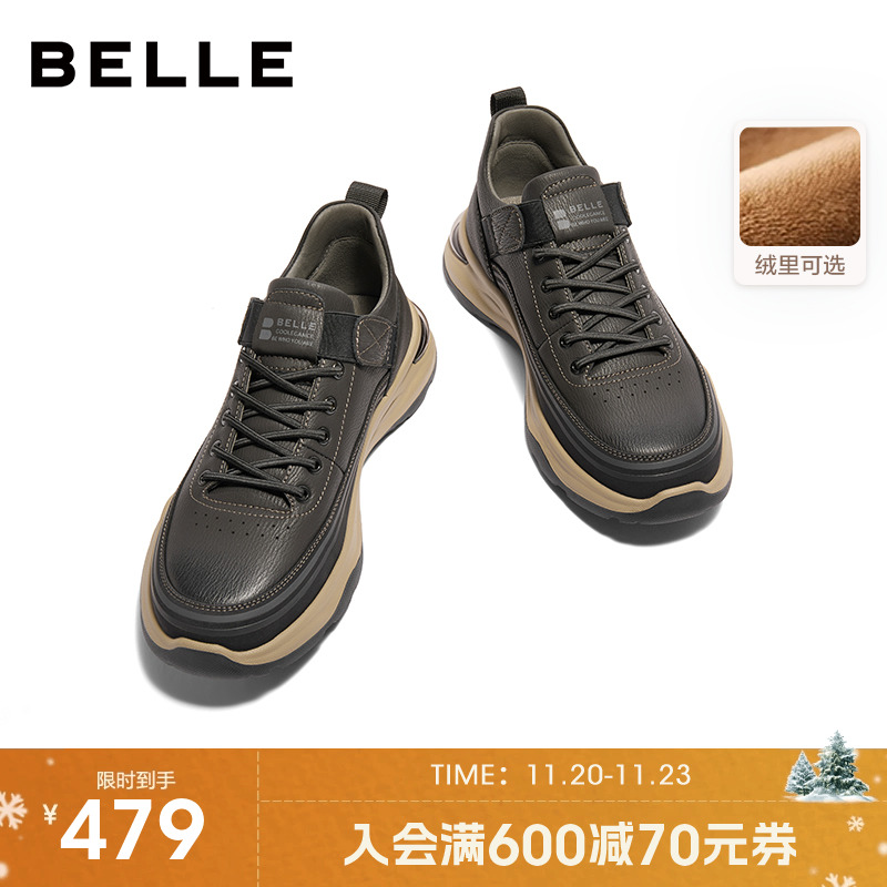 Belle Men's Platform Casual Workwear Cotton Shoes Men's Outdoor Dad Boots Soft Sole High Top Sports Fleece 8MU01D