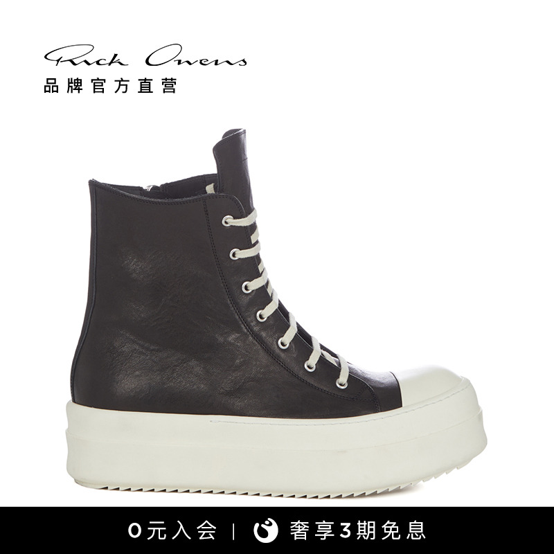 RICK OWENS Men's Black Washed Cowhide MEGA BUMPER Lace-up Sneakers