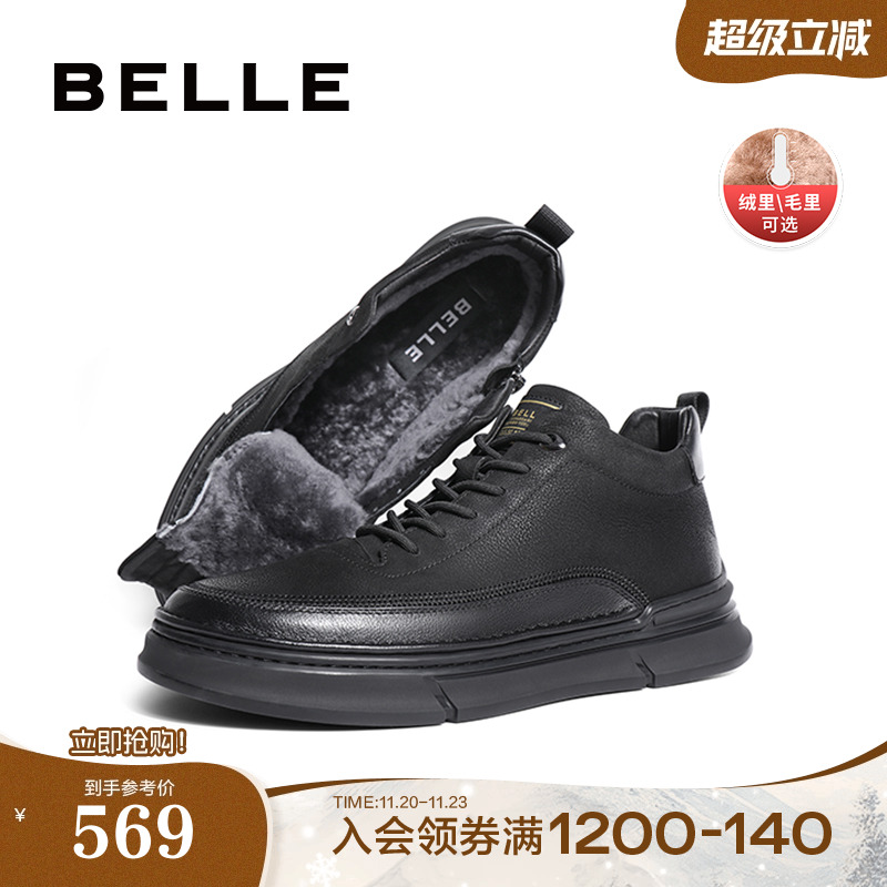 Men's cotton shoes with fleece warm real cowhide shoes, high-top platform anti-ski floor boots, dad shoes