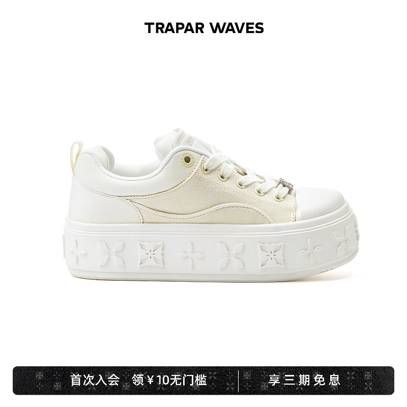 TRAPAR WAVES embossed canvas shoes, white platform shoes, fashionable casual shoes, round toe, versatile little white shoe girl