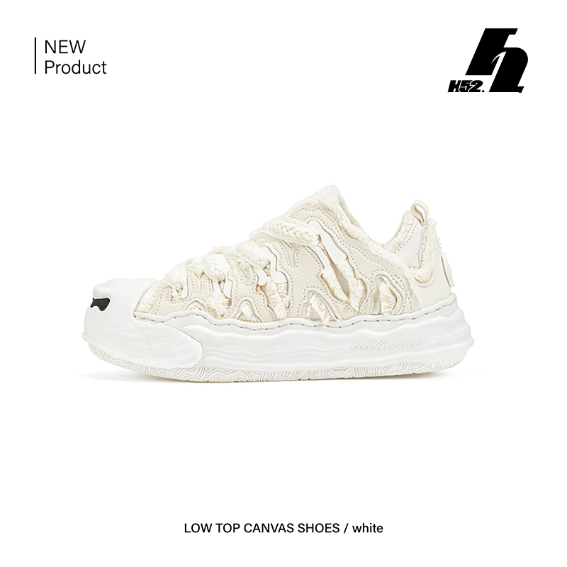 [Summer Light Same Style] H52 cream shoes open smile canvas shoes big toe shoes original white shoes cake shoes