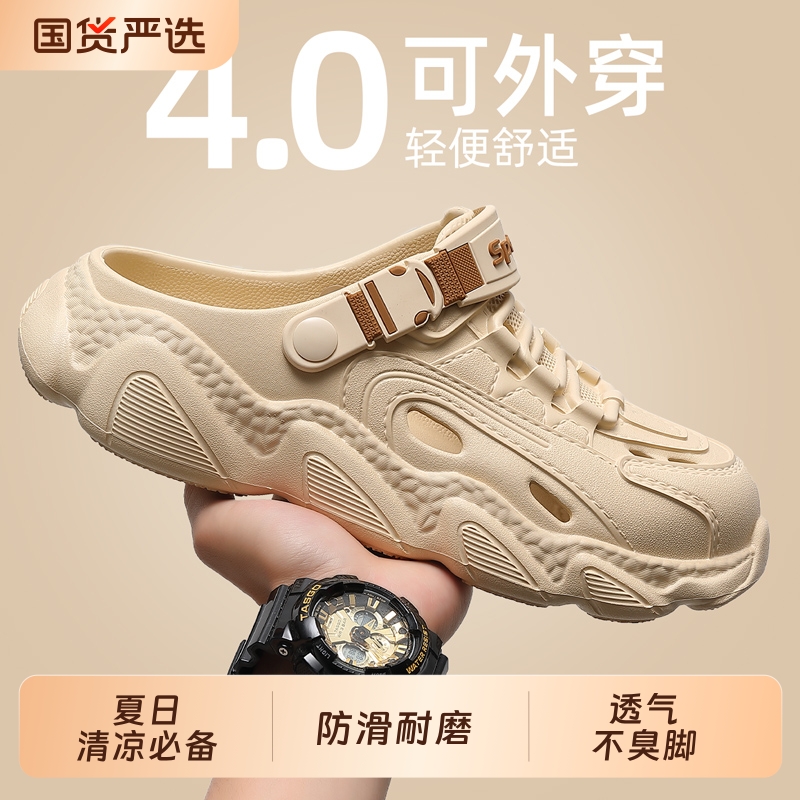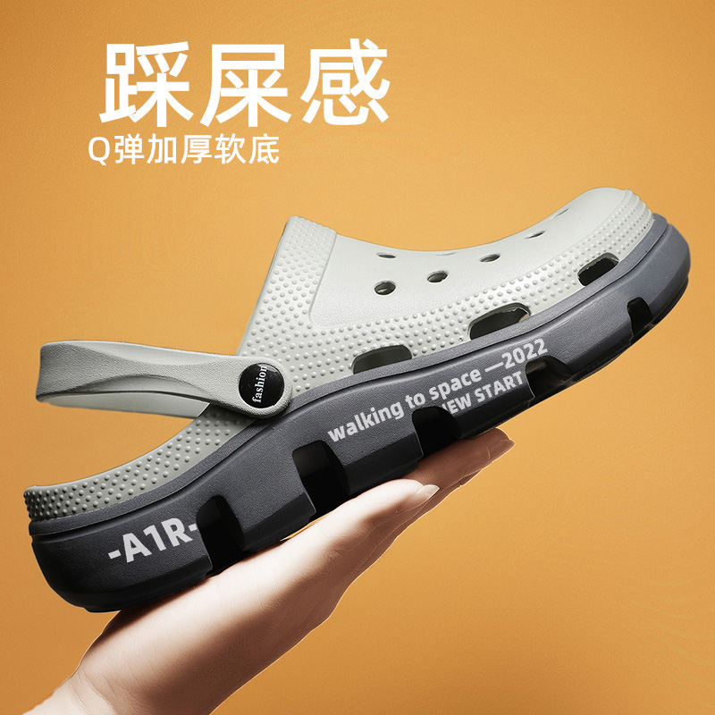 Hole shoes men wear non-slip shoes outside in summer, dual-purpose semi-wrapped toe teenagers step on feel sports beach sandals