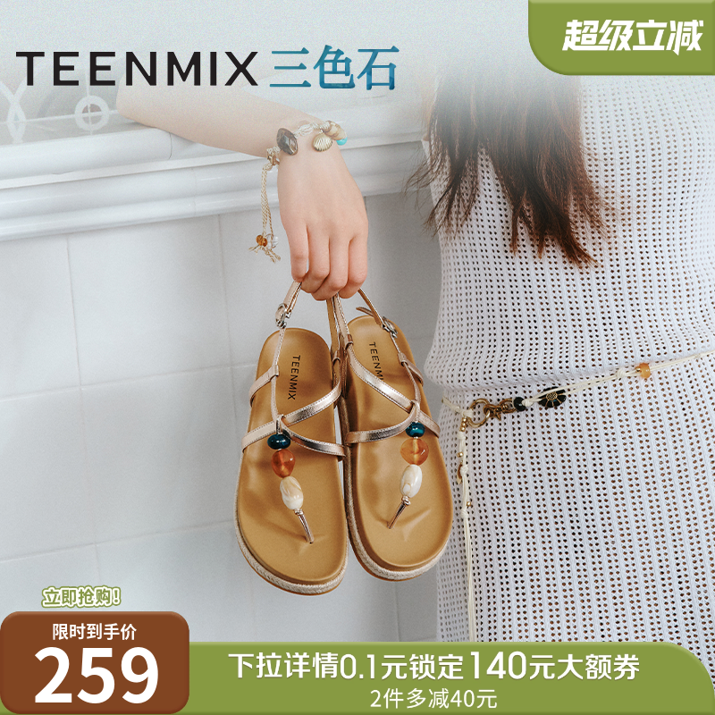 Tianmei tricolor stone with casual vacation platform sandals women's clip-toe beach sandals new summer style