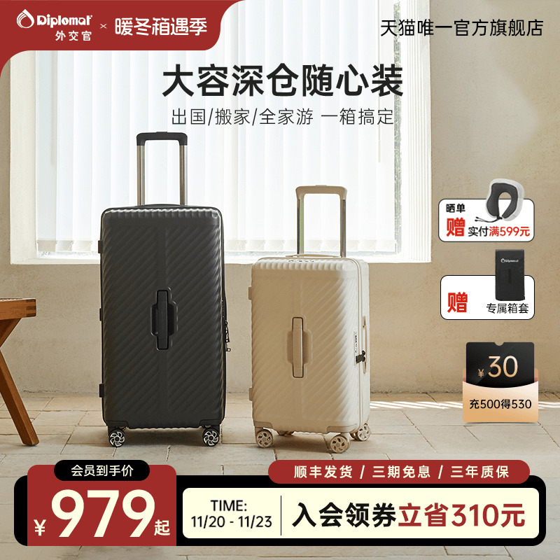 Luggage large capacity women's 28 inches 32 oversized 30 thickened durable side opening deep compartment wide tie rod password suitcase for men
