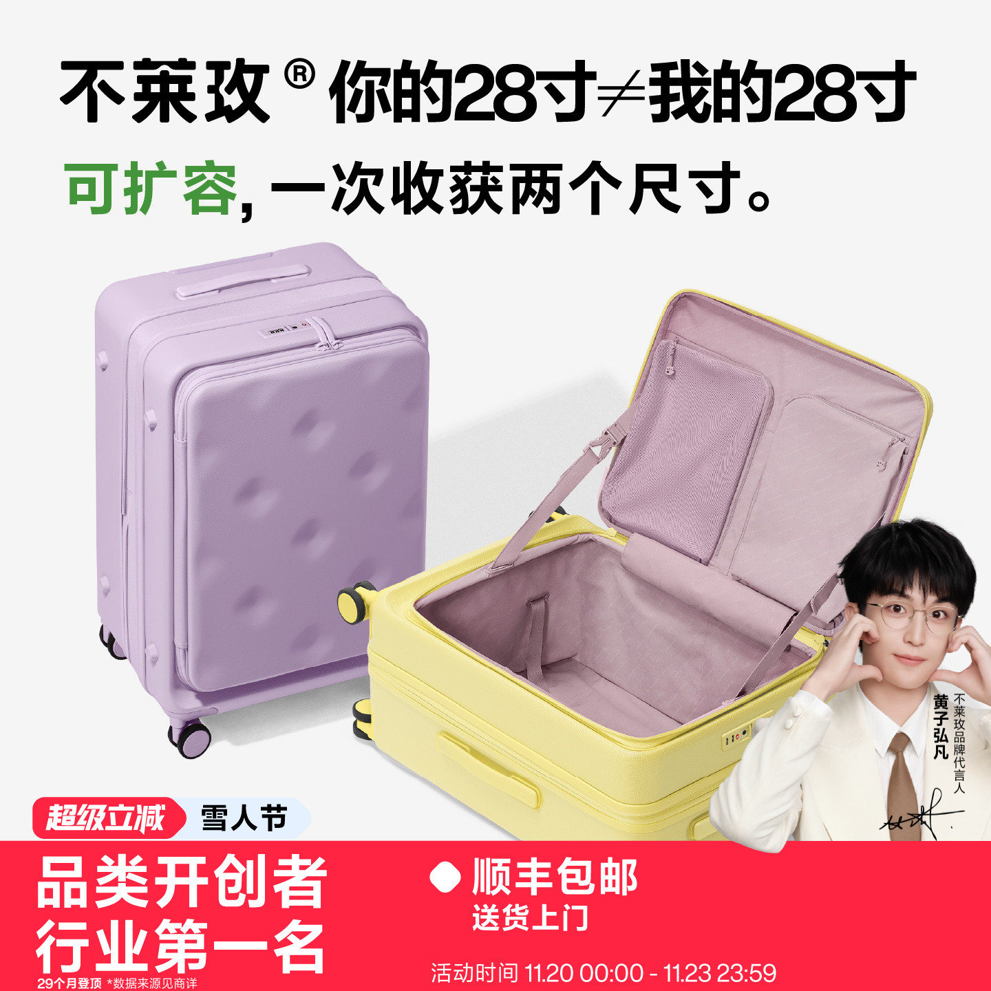 The side lid can be expanded to accommodate the student zipper suitcase, the large capacity men's suitcase, the large deep compartment women's five-wheel trolley suitcase