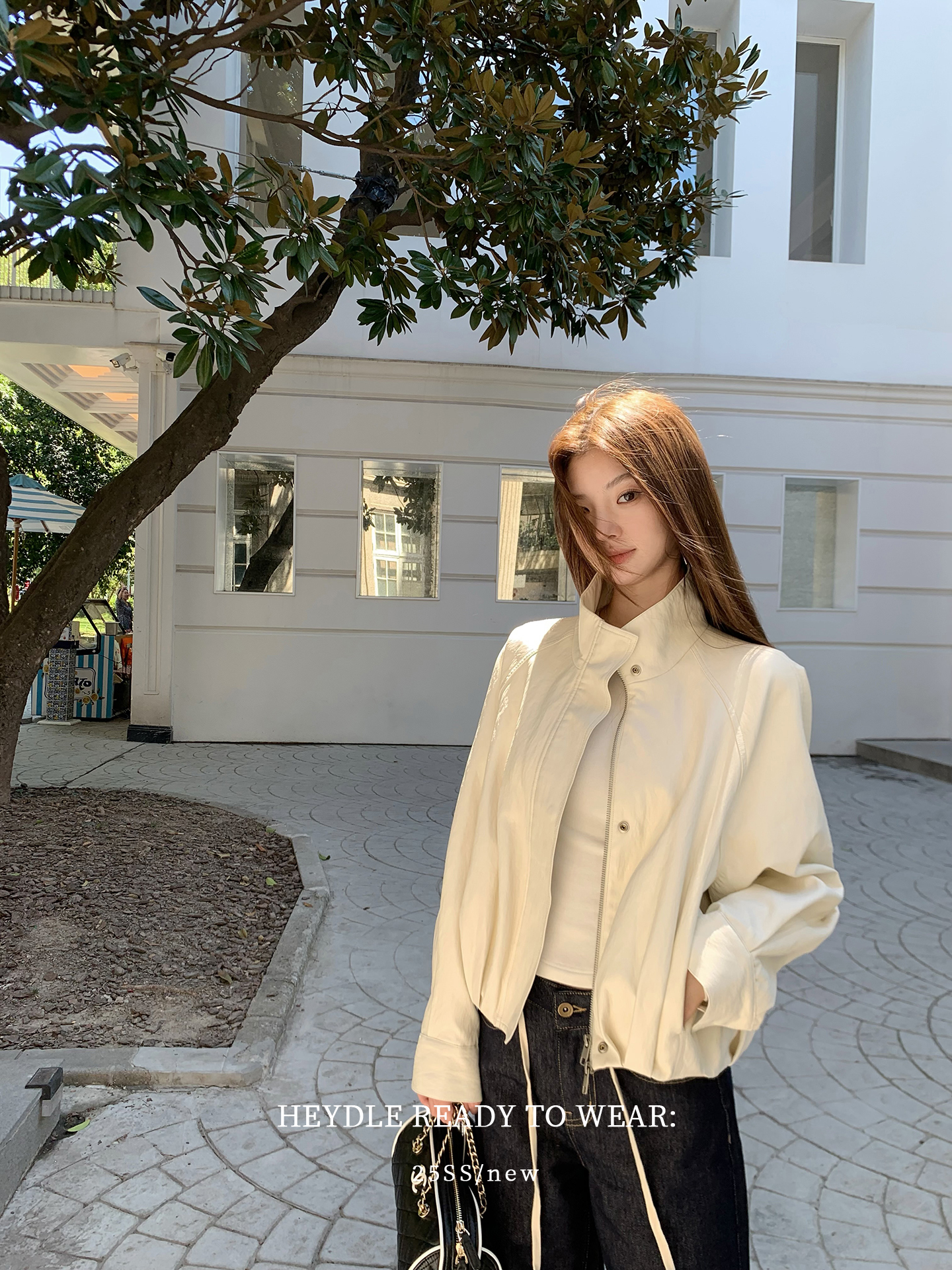 Black Bean Hum Hum White Night Concert* Stand Collar Pu Leather Jacket Women's Casual Versatile Zipper Motorcycle Jacket White