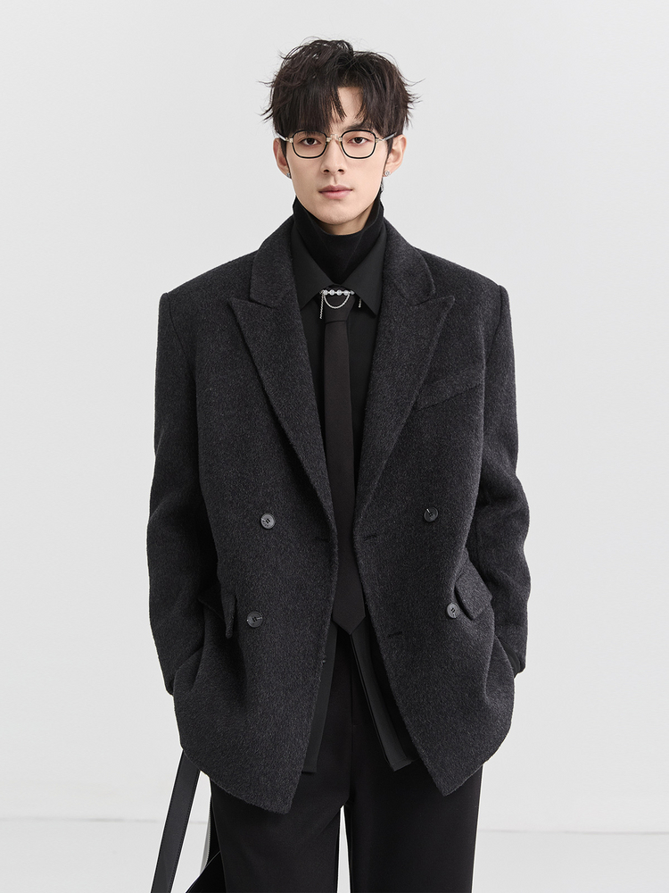 High-End Custom-Woven 100% Wool Bjze25 Winter Double-Sided Woolen Suit for Men with Shoulder Pads and Thickened Woolen Coat