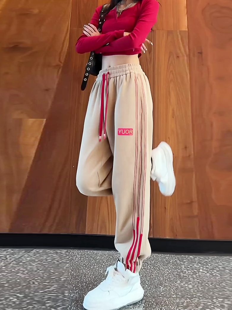 European Style Fleece-Lined Women's Striped Jogger Sweatpants 2025 Autumn and Winter New Versatile Loose Casual Harem Pants
