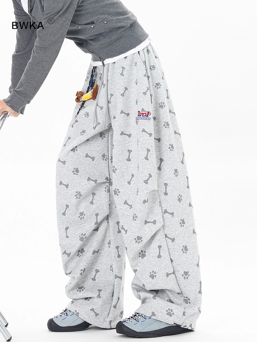 American-Style Puppy Print Sweatpants for Women and Men, New Autumn Trendy Brand Loose Lazy Style Pleated Wide-Leg Casual Pants