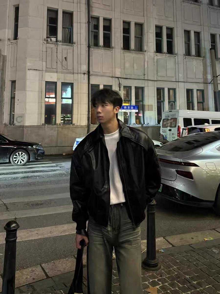 American Retro Patchwork Biker Leather Jacket for Men, Autumn and Winter Casual Loose Design, High Street Cool Lapel Jacket