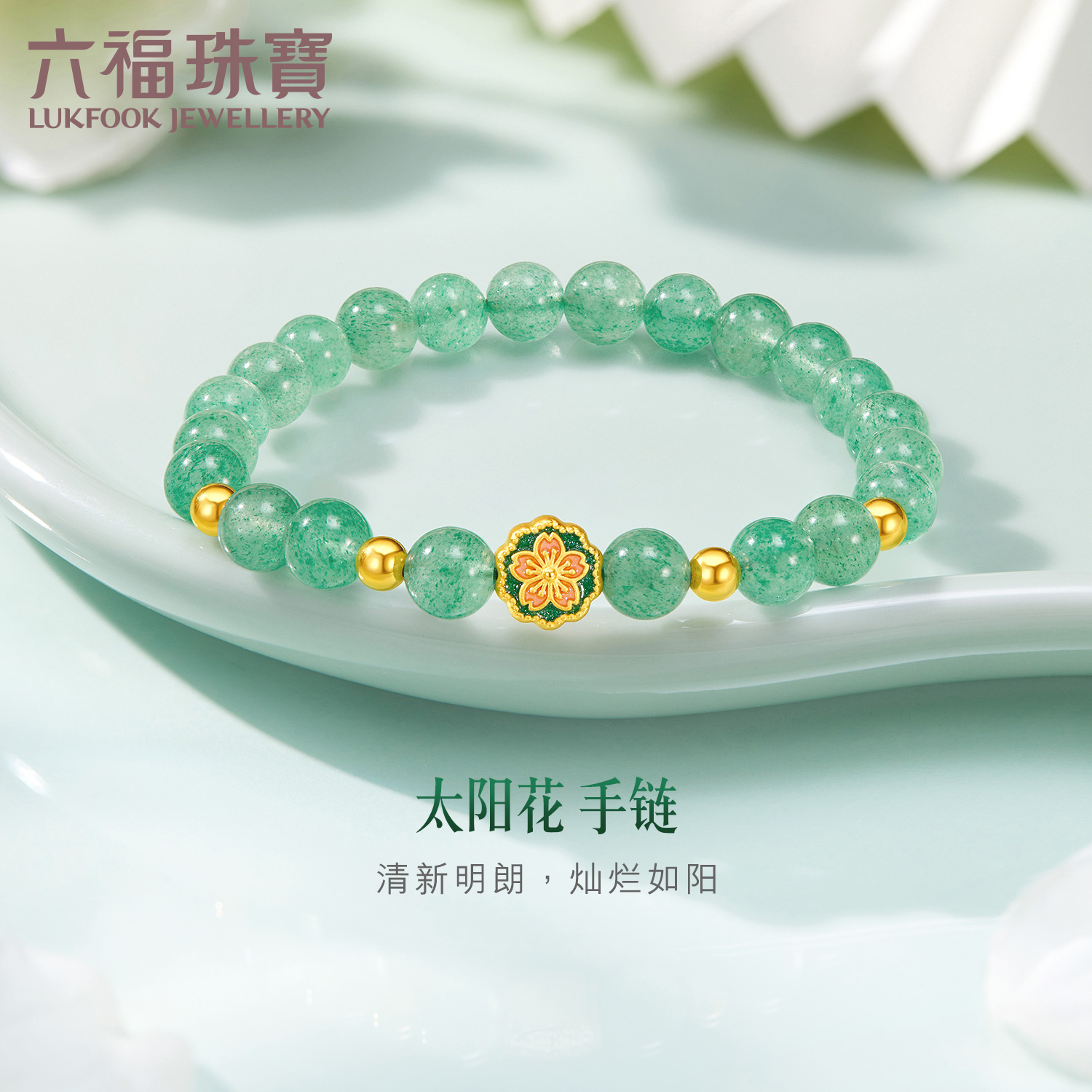 Liu Fu Jewelry Sunflower Gold Fortune Bead Bracelet for Women Quartz Jade Green Strawberry Crystal Bracelet A03A0003Ds