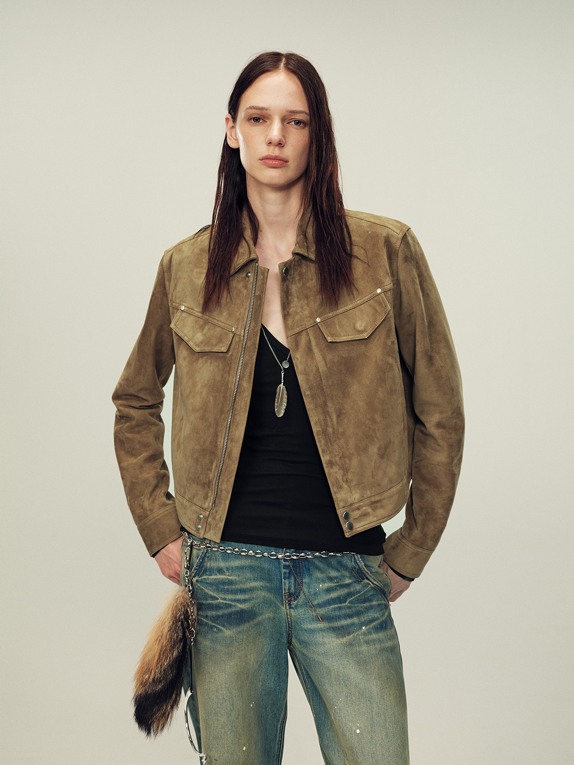Fu Zhi En's Stylish Imported First-Layer Suede Sheepskin Leather Box-Style Short Genuine Leather Jacket for Women, Autumn