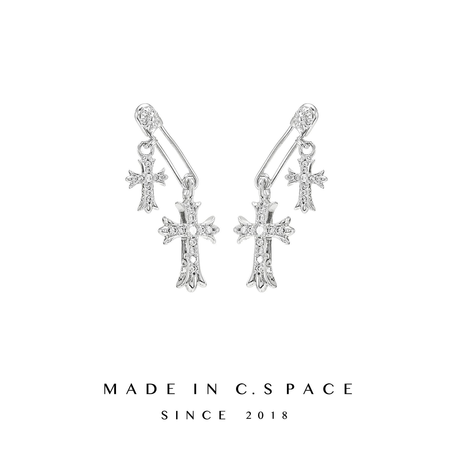 Cross Pin Diamond Earrings for Women Stylish Niche Design Elegant Earrings Accessible Luxury Classy Sense Non-Pierced Ear Clips