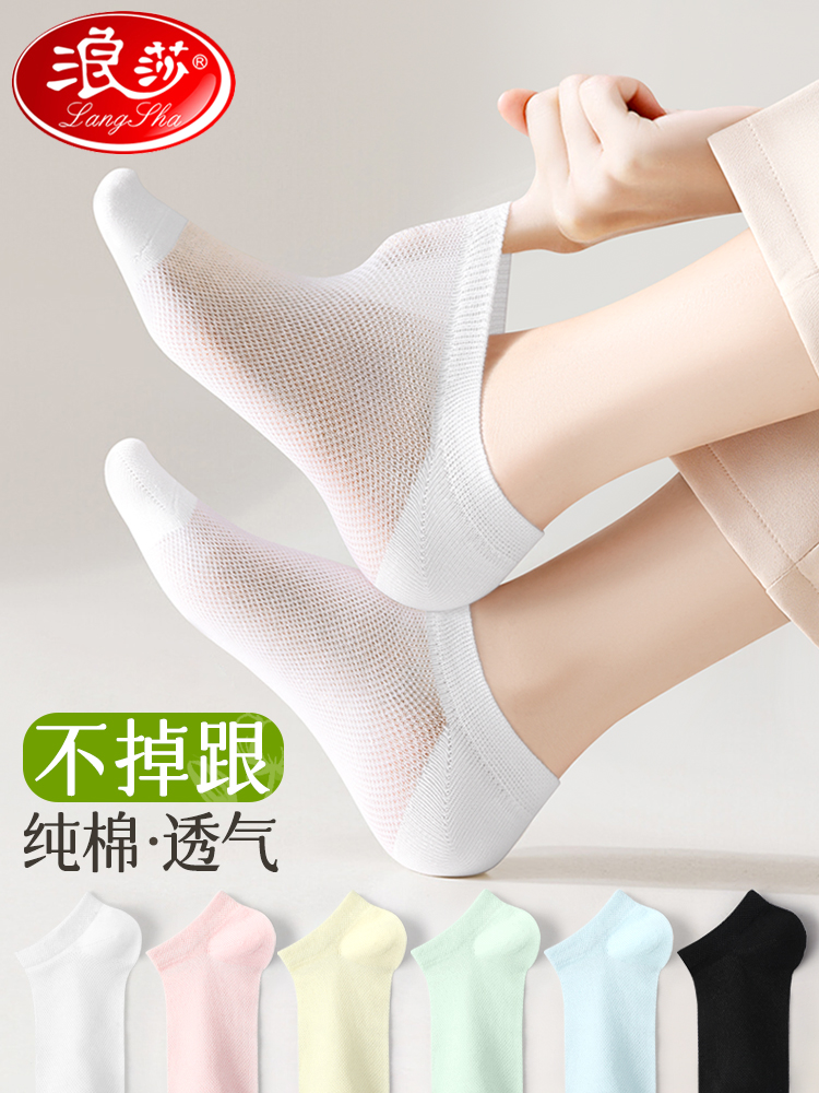 Langsha Socks Summer Thin Women's Boat Socks Does Not Fall Off pure cotton Breathable 100% Cotton Spring & Fall Summer White Short Socks