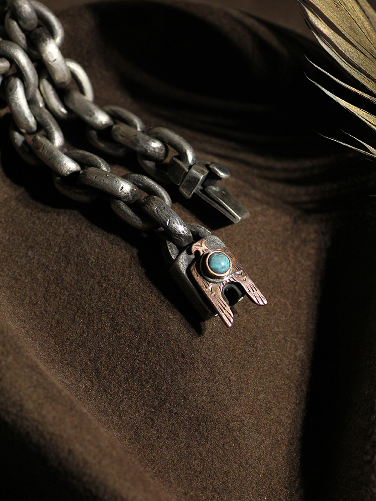 Vajra Original Sky Heart Handmade Eagle Totem Sterling Silver Bracelet Chain American Turquoise Indian