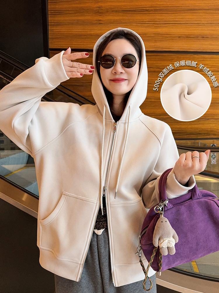 Libelinisy Casual Hooded Outwear Fall and winter 500g Loose thickened Fashion Western Style Double-Sided Velvet Zipper Sweatshirt