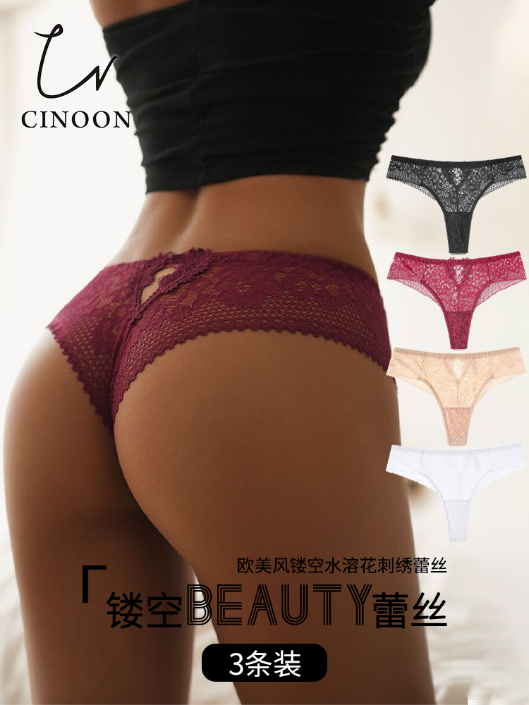 Fashion sexy Lace Low-Waist Sports Thong Women's Butt Lift Slimming Look Large Size Cut Out Plaid Half-Covering Hip T-String Pants