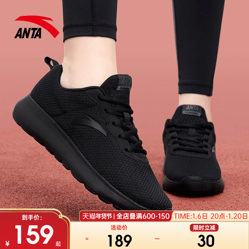 Anta Sports Shoes Women's Shoes Black Women's Shoes 2024 New arrival Winter Official Flagship Women's All Black Running Shoes