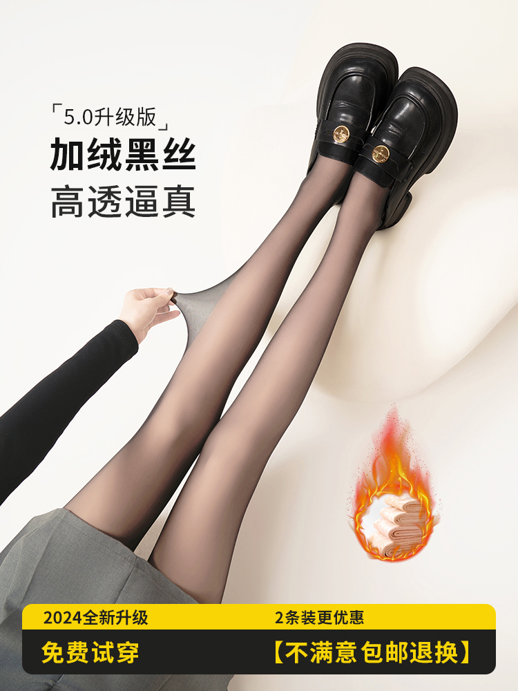 Black Stockings Skin Tights Women's Velvet Spring & Fall Winter Thin Double Layer Black Silk Translucent Heattech Pantyhose and Leggings