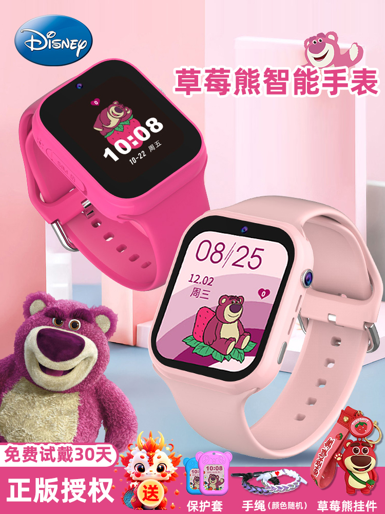 Disney kids Phone Watch Girl Strawberry Bear 4g Full Netcom Card Video Call Intelligent Positioning