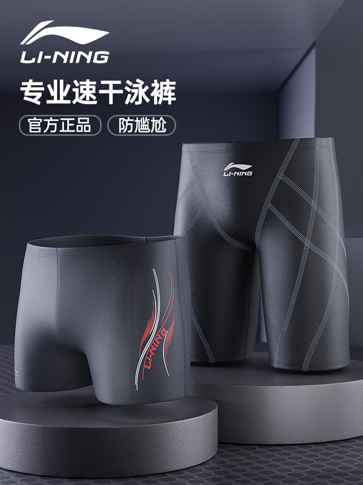 Li Ning Swimming Trunks Men's Anti-Embarrassment Swimming Trunks Men Swimsuit Hot Spring Boxer Half Length Plus size New arrival Professional Swimwear