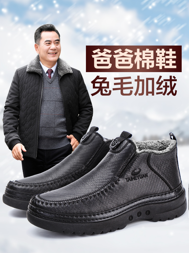 Old Beijing Cloth Shoes Men's Cotton Shoes Winter Fleece-lined Elderly Shoes Heattech Non Slip Grandpa Men Middle-Aged and Elderly Dad's Shoes