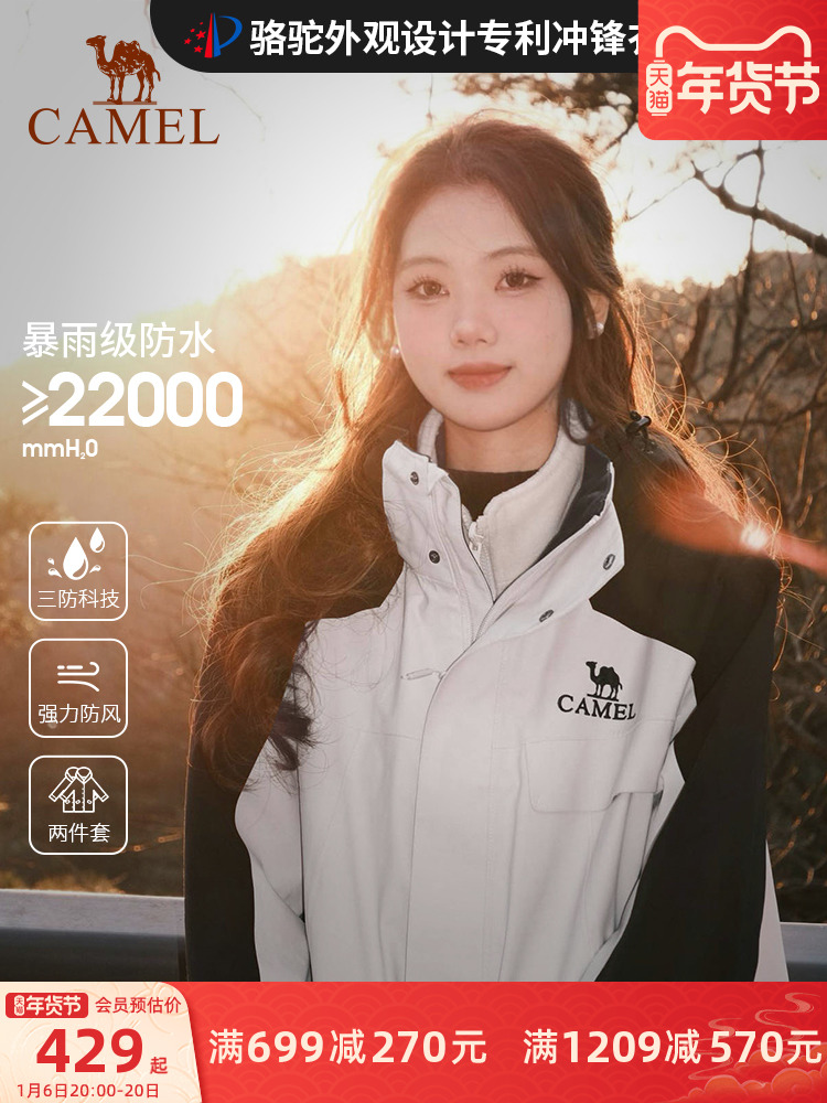 Camel Storm Jacket Women's Three-In-One parka Outdoor Down jacket Heavy Rain Waterproof Outwear Winter Plus Velvet Mountaineering Jacket