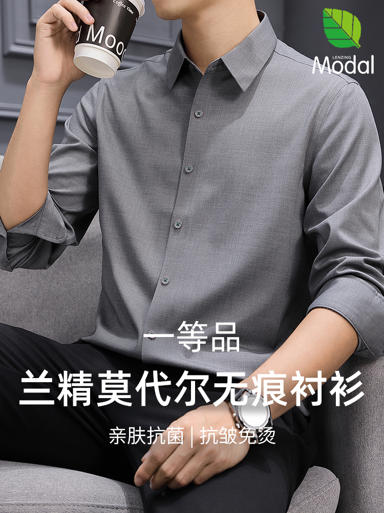 First-Class Modal Seamless shirt Men Fancy Spring & Fall Business No-Iron Shirt 2024 New arrival Anti-Wrinkle Inch Shirt