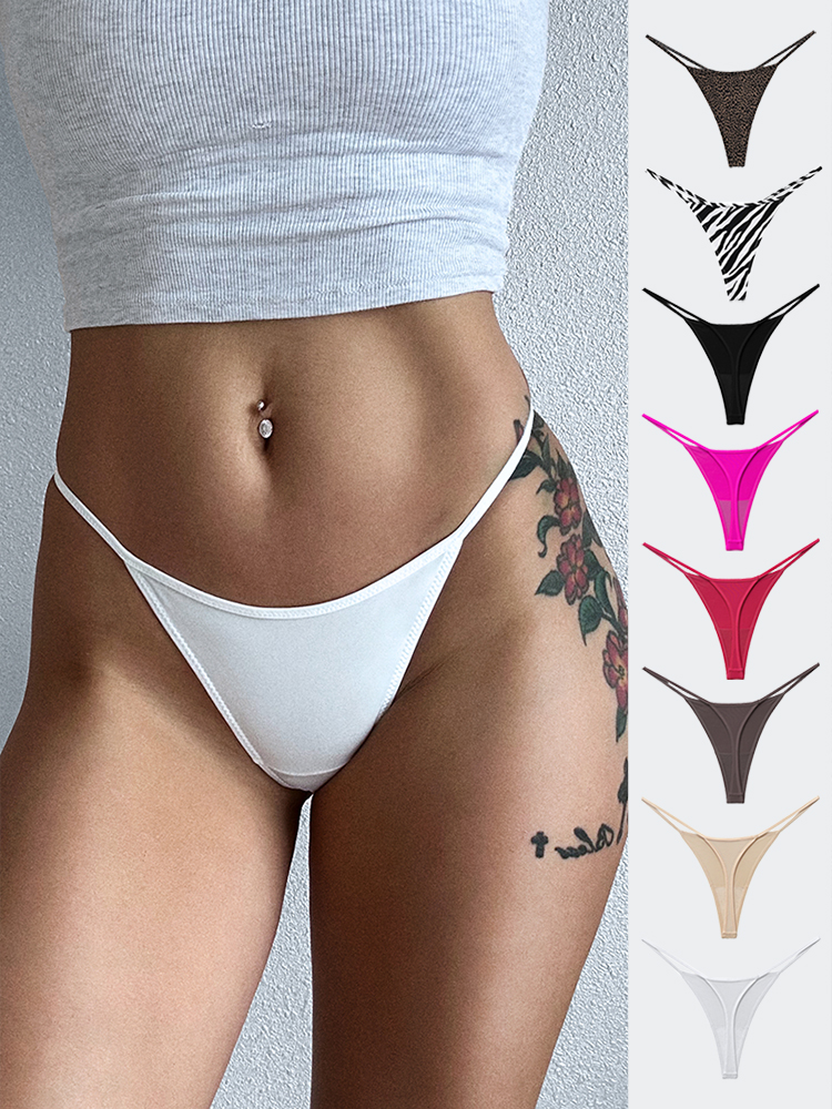 Basic Ice Silk Sexy Thong with Thin Straps, Pure Desire Zebra Leopard Print Bikini, Comfortable and Stretchy Plus Size T-Back Panties for Women