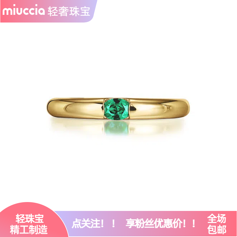 Cultivated Emerald Ring, Plain Gold Ring, Minimalist Style, ins Style Silver Plated with 18K Gold, Light Luxury High-End Couple Rings