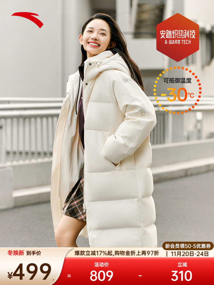 Anta Quick-Warm down Jacket | Four-Proof Mid-Length down Jacket for Women, Winter Warm Duck down Coat, Casual Trendy Cotton Jacket