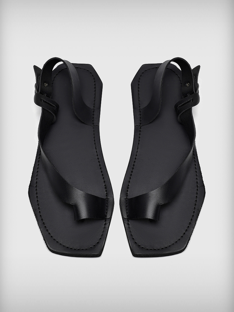 European Style 2025 Summer Square-Toe Stylish British Roman Retro Open-Toe Fish Mouth Shoes Flat Low-Heeled Thong Sandals