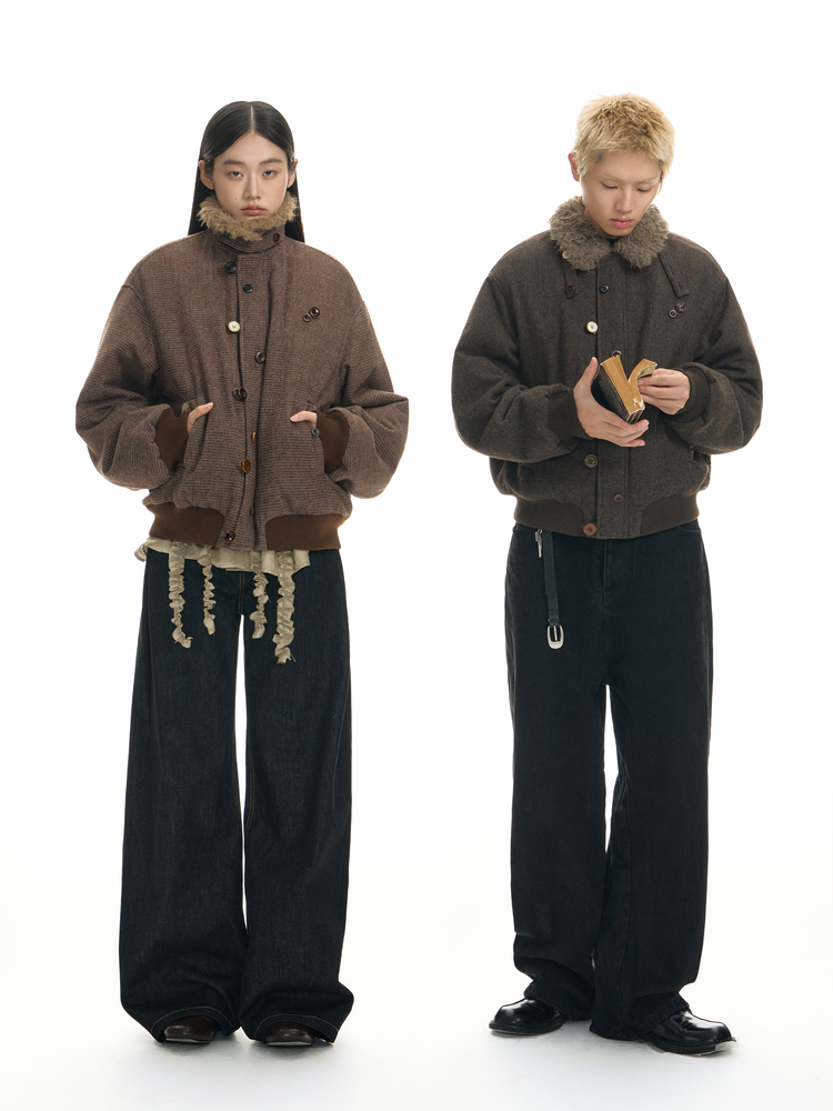 Tgns Imitation Lamb Wool Lapel Thick Coat for Women, Winter Warm Cotton Coat for Men, American Retro Cotton Jacket, Casual Top