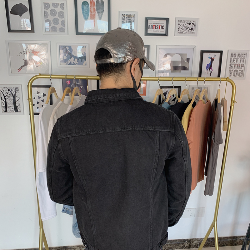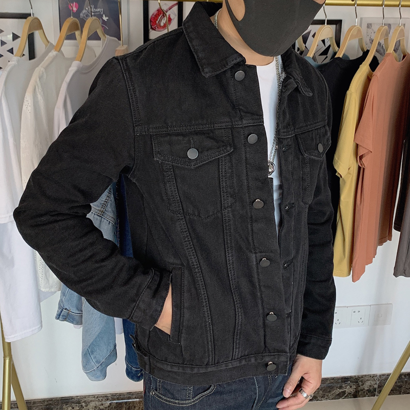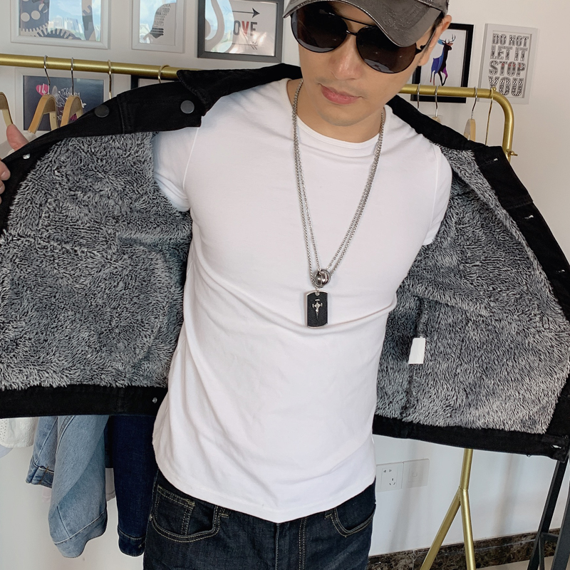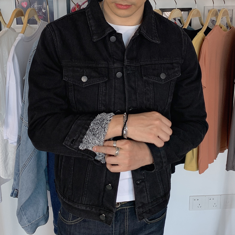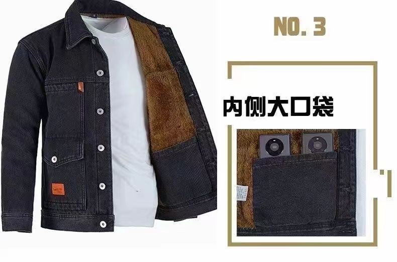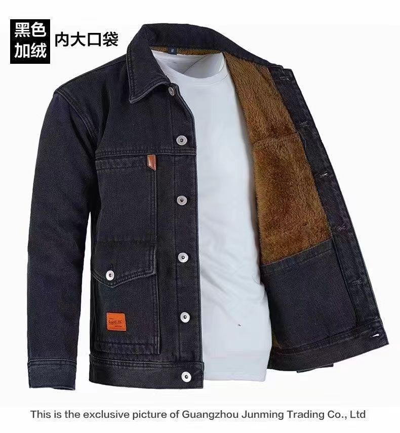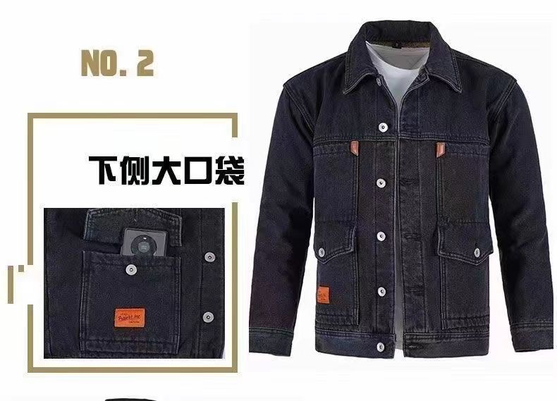 Work Jacket for Men, Fleece-Lined and Thickened Denim Jacket, Korean Style, Warm, Loose-Fitting, Durable for Construction Workers, Lapel Collar Top