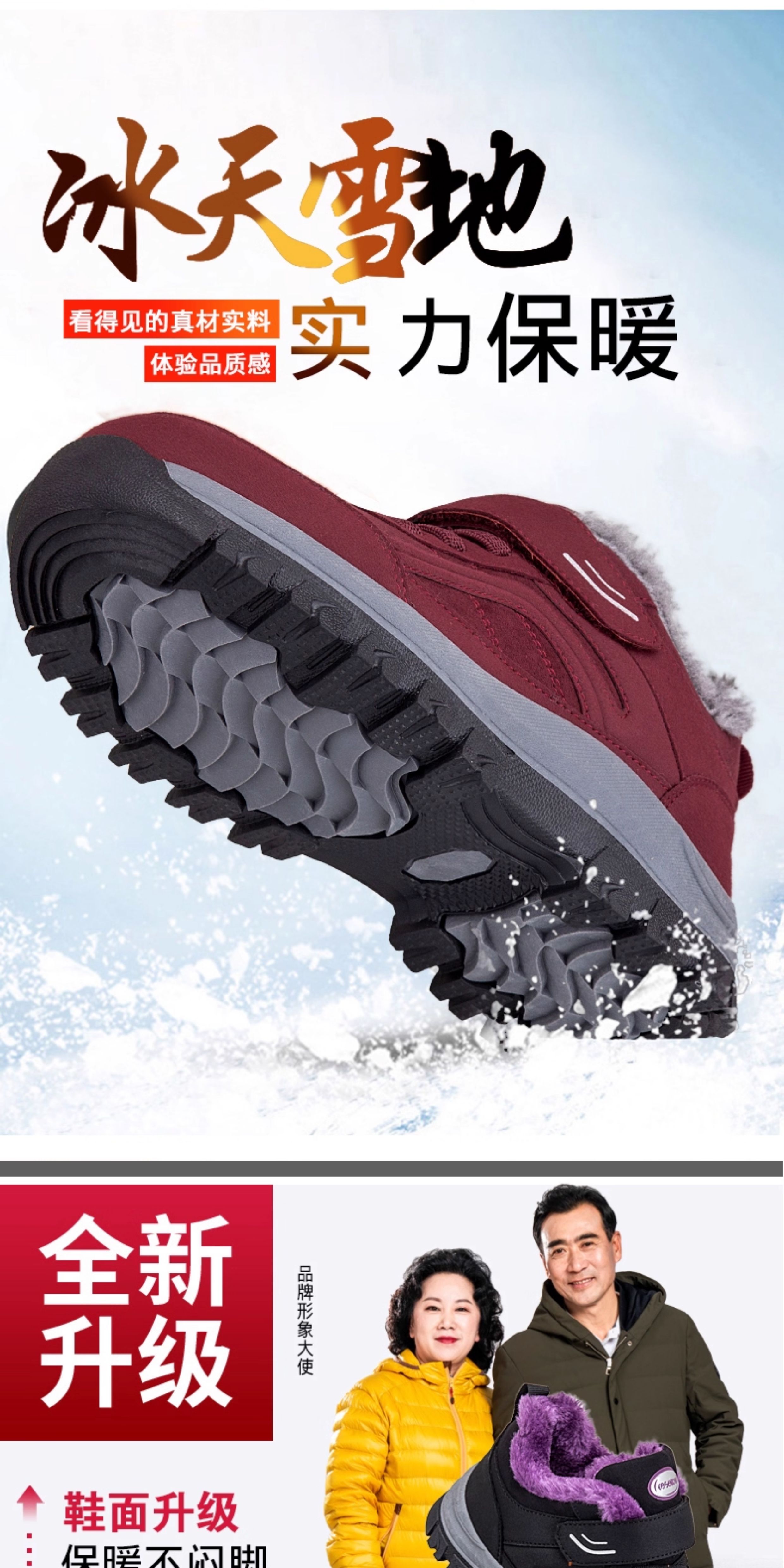 Zhang Kaili Elderly Women's Cotton Shoes Winter Fleece-Lined Thickened Warm Northeast Mom Cotton Boots Middle-Aged and Elderly Walking Sneakers