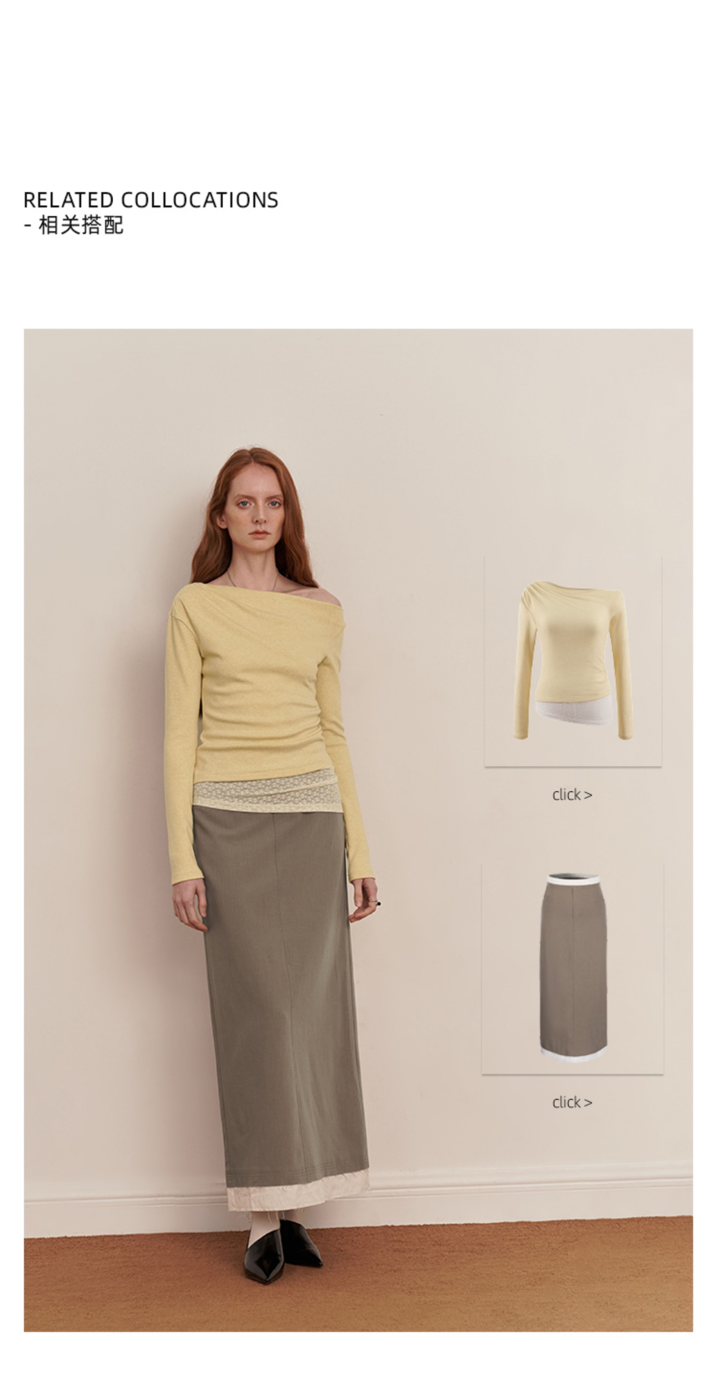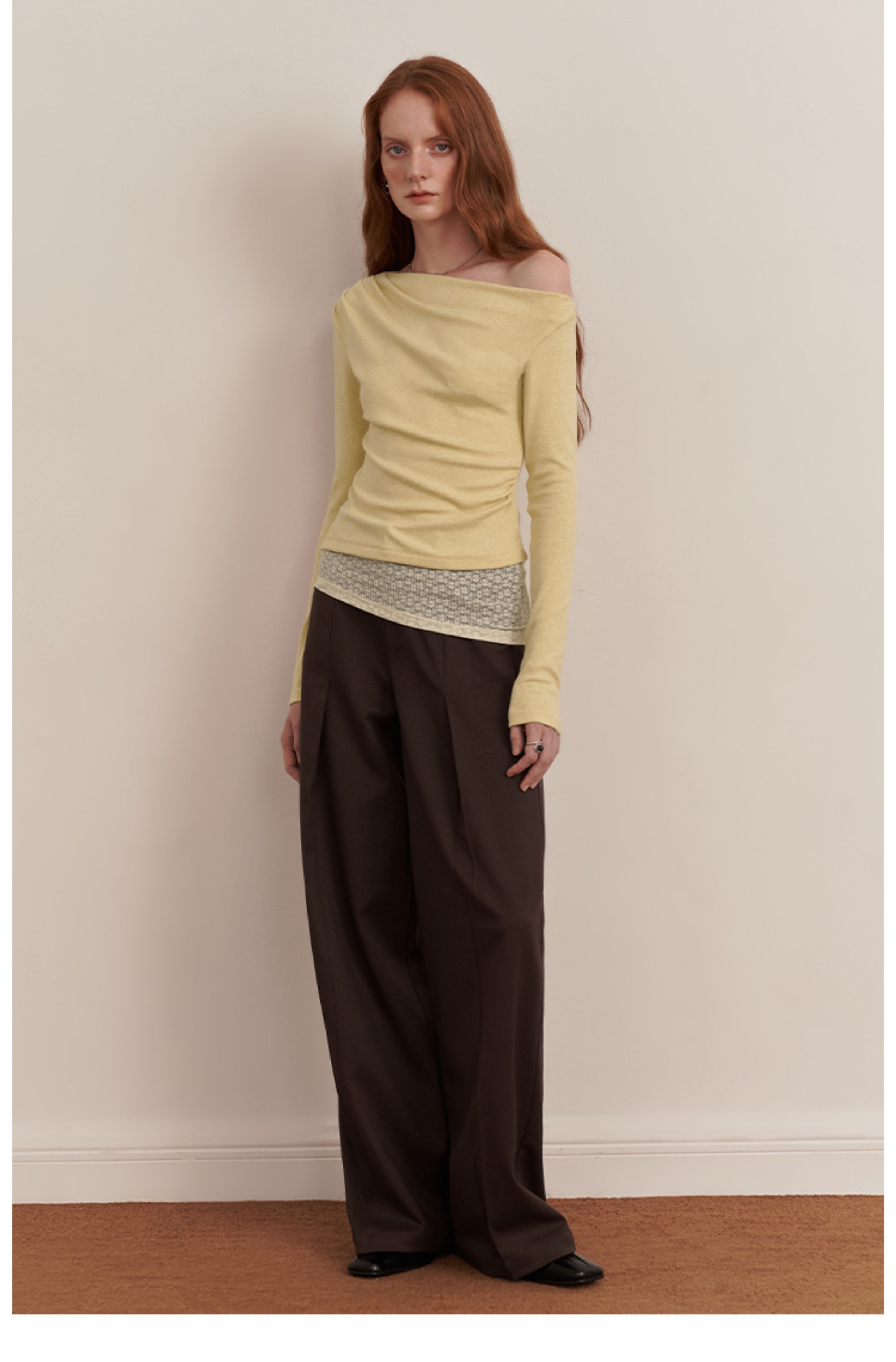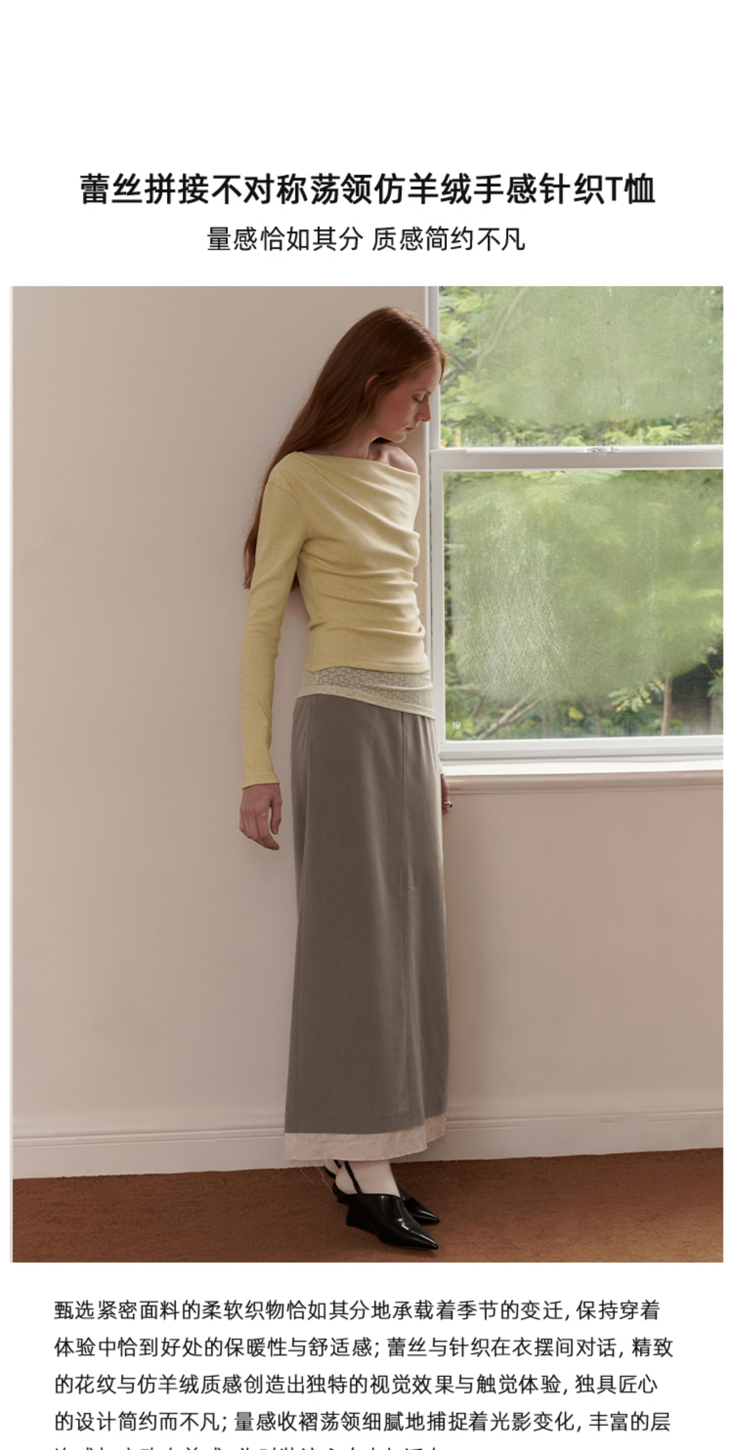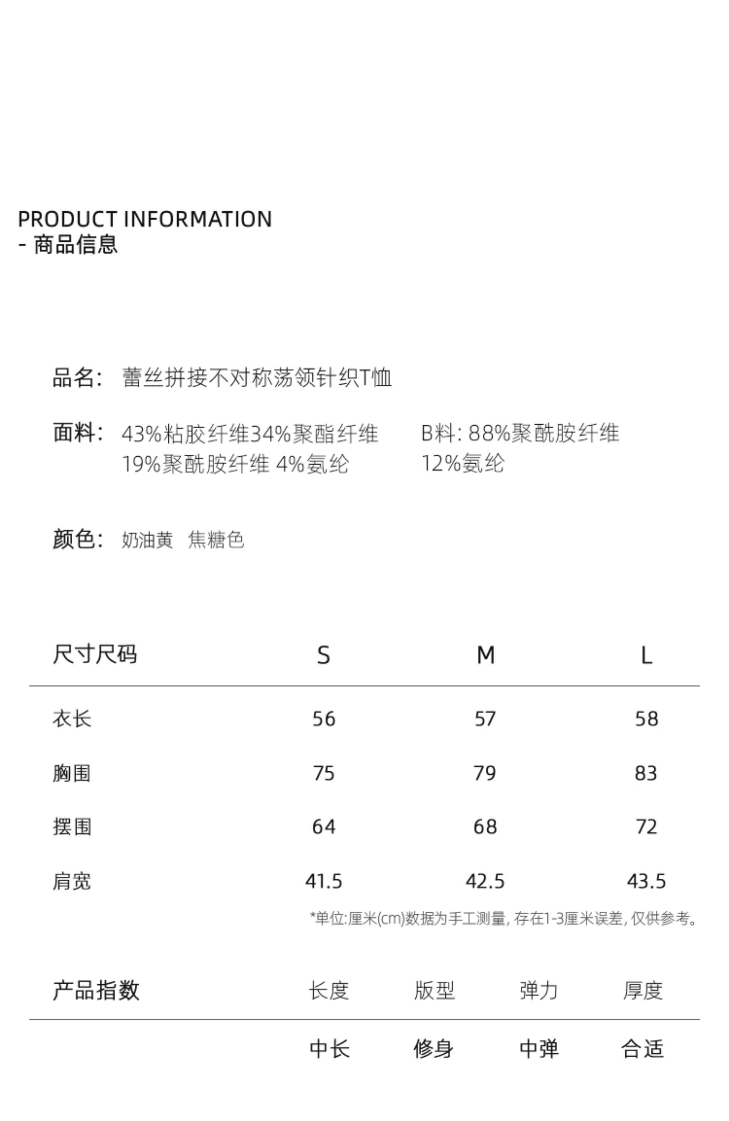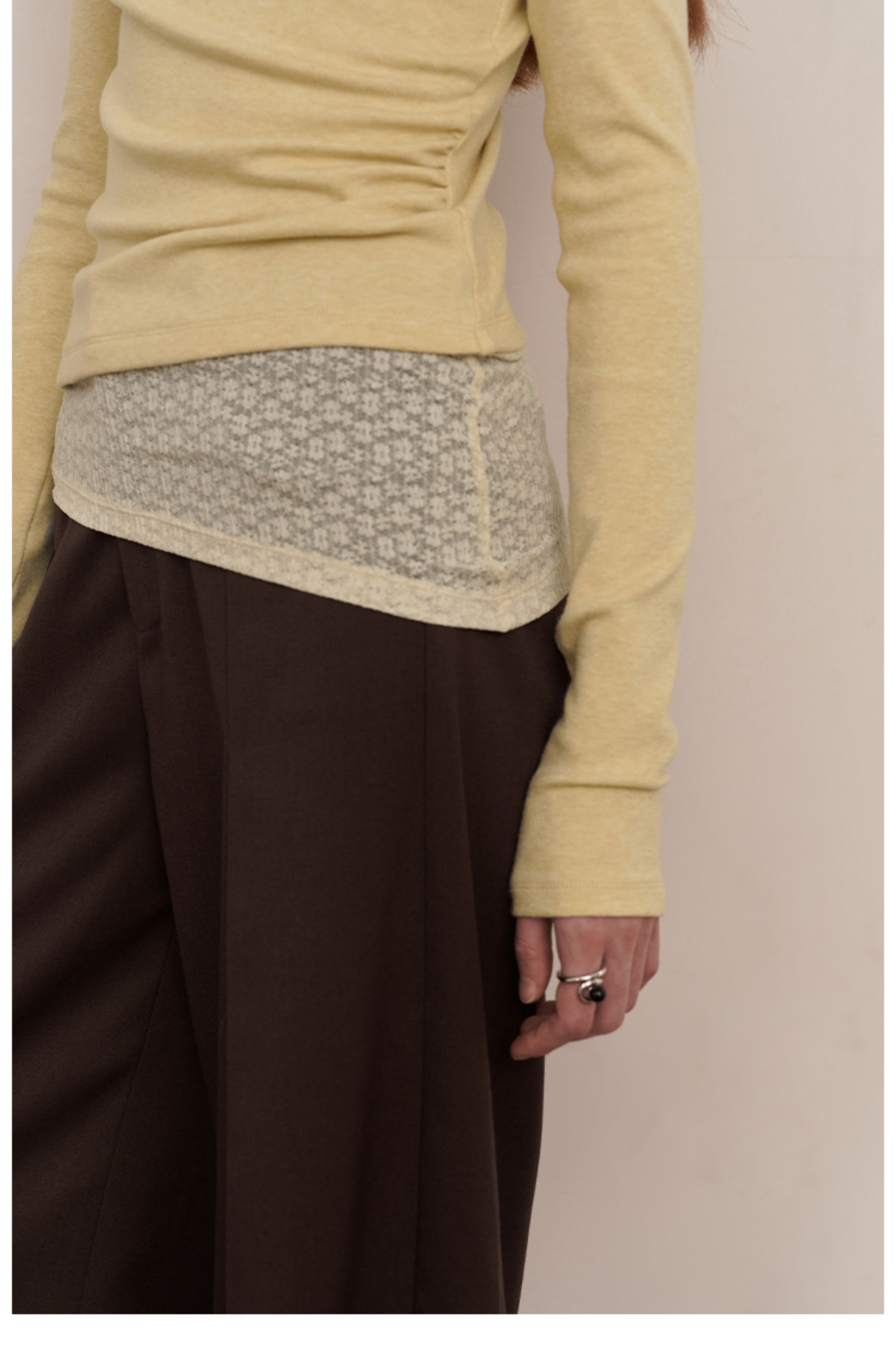 Someone Sometimes Original Lace Splicing Asymmetrical Waist-Cinching Faux Cashmere Feel Swing Collar Knit T-Shirt