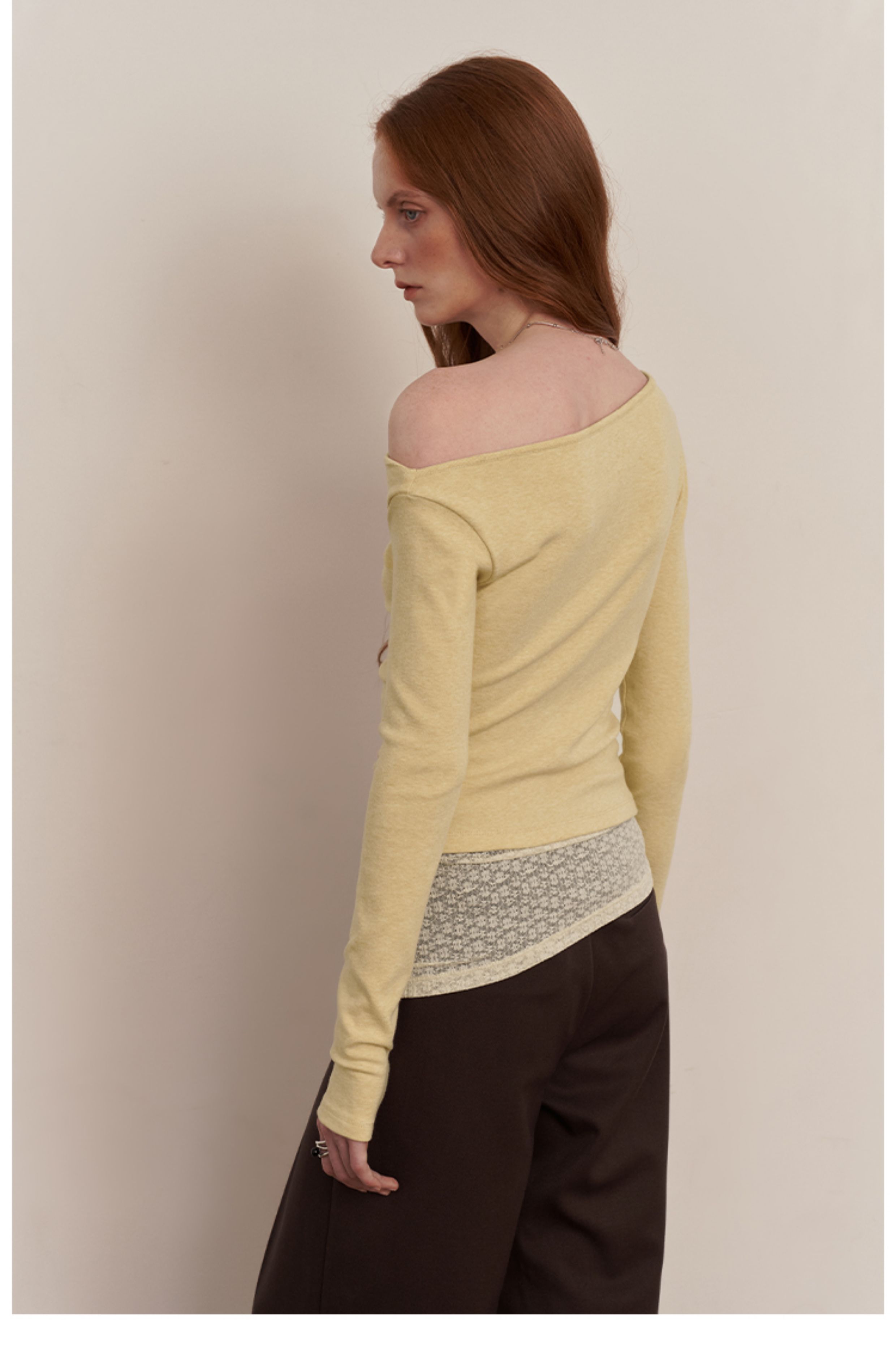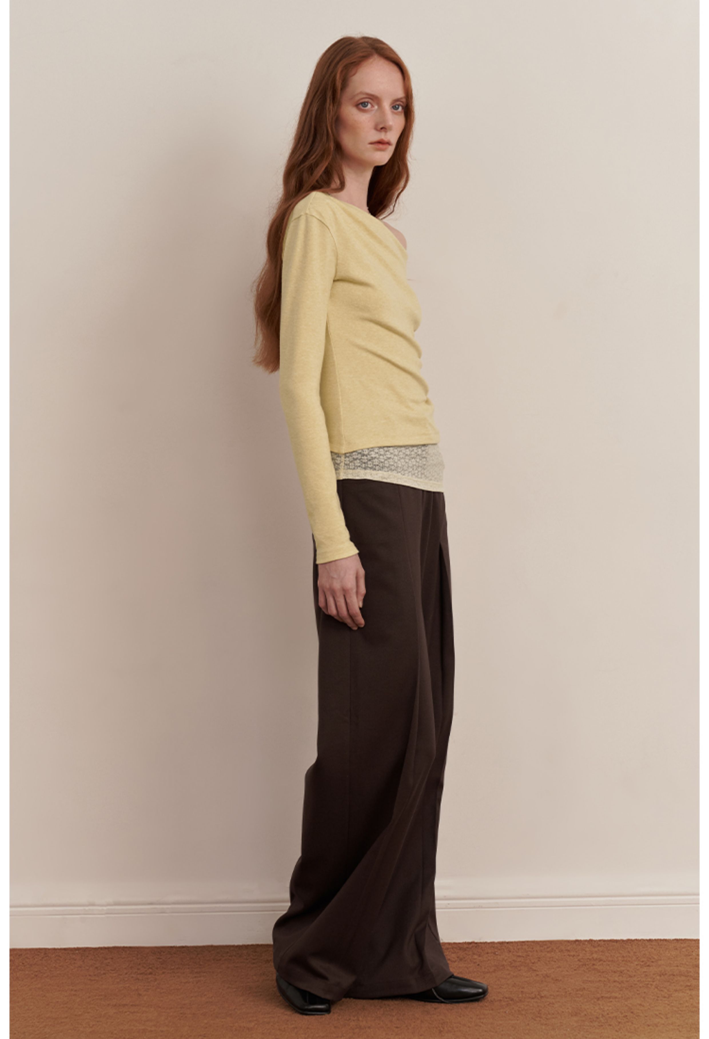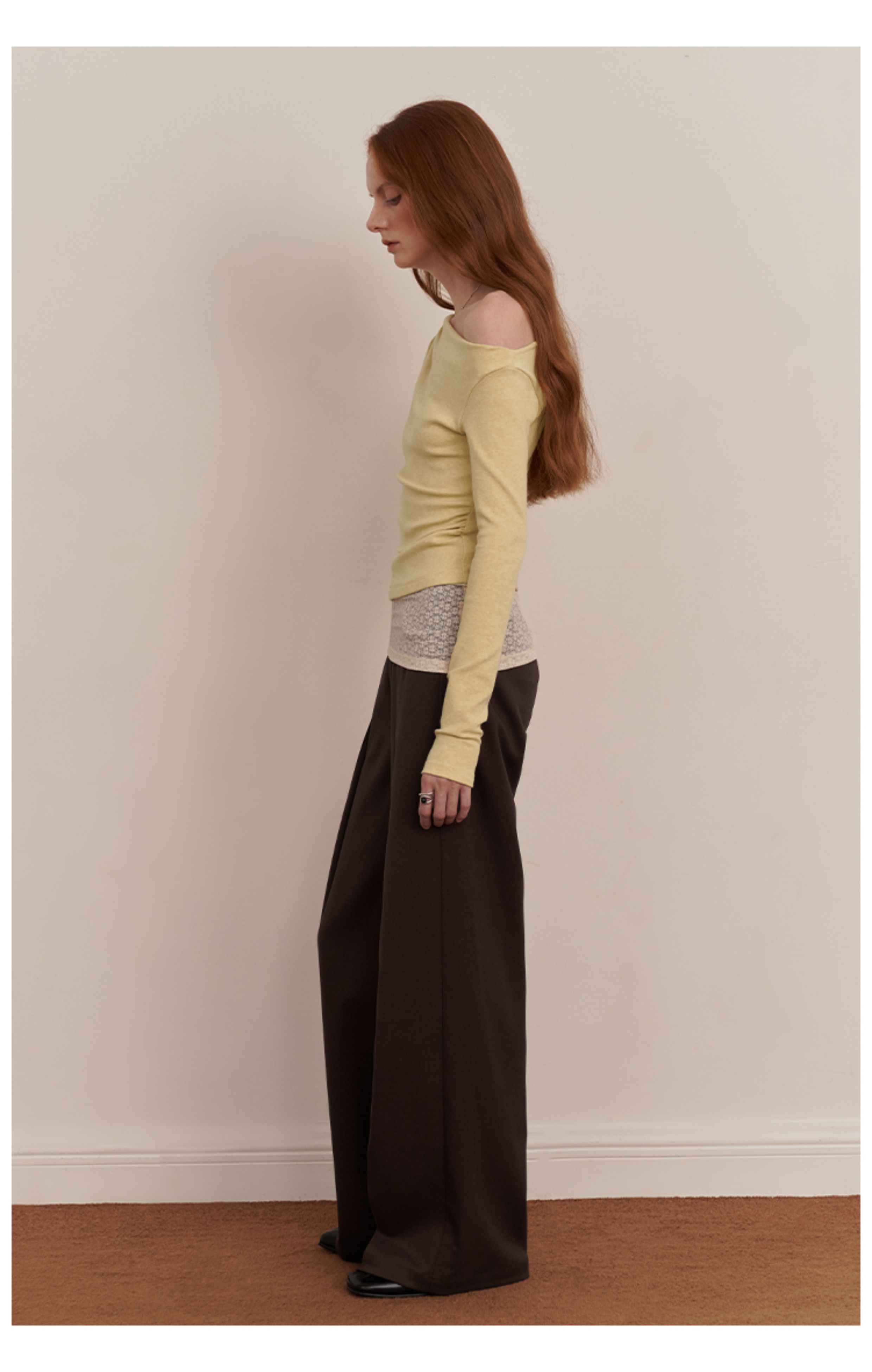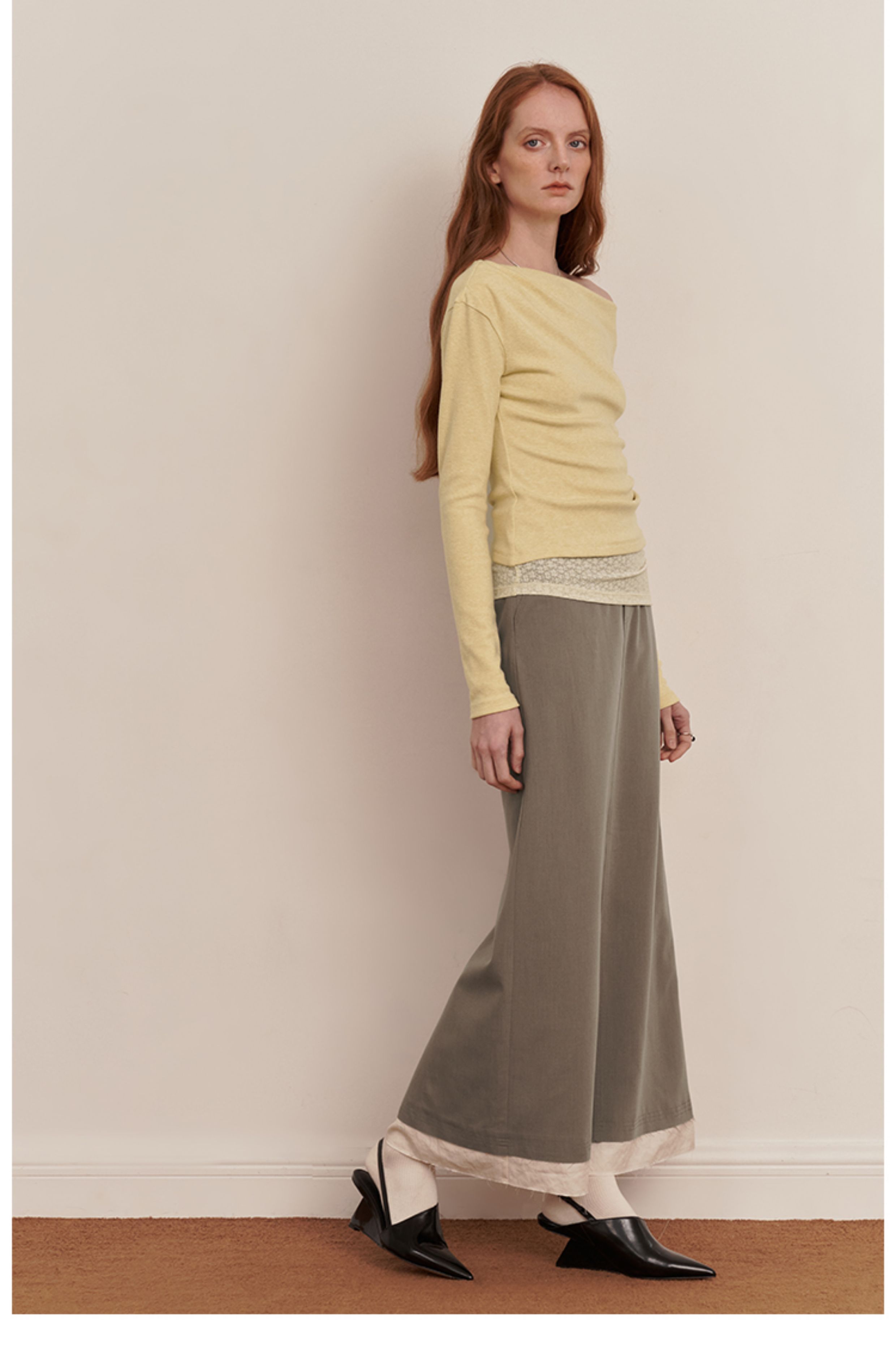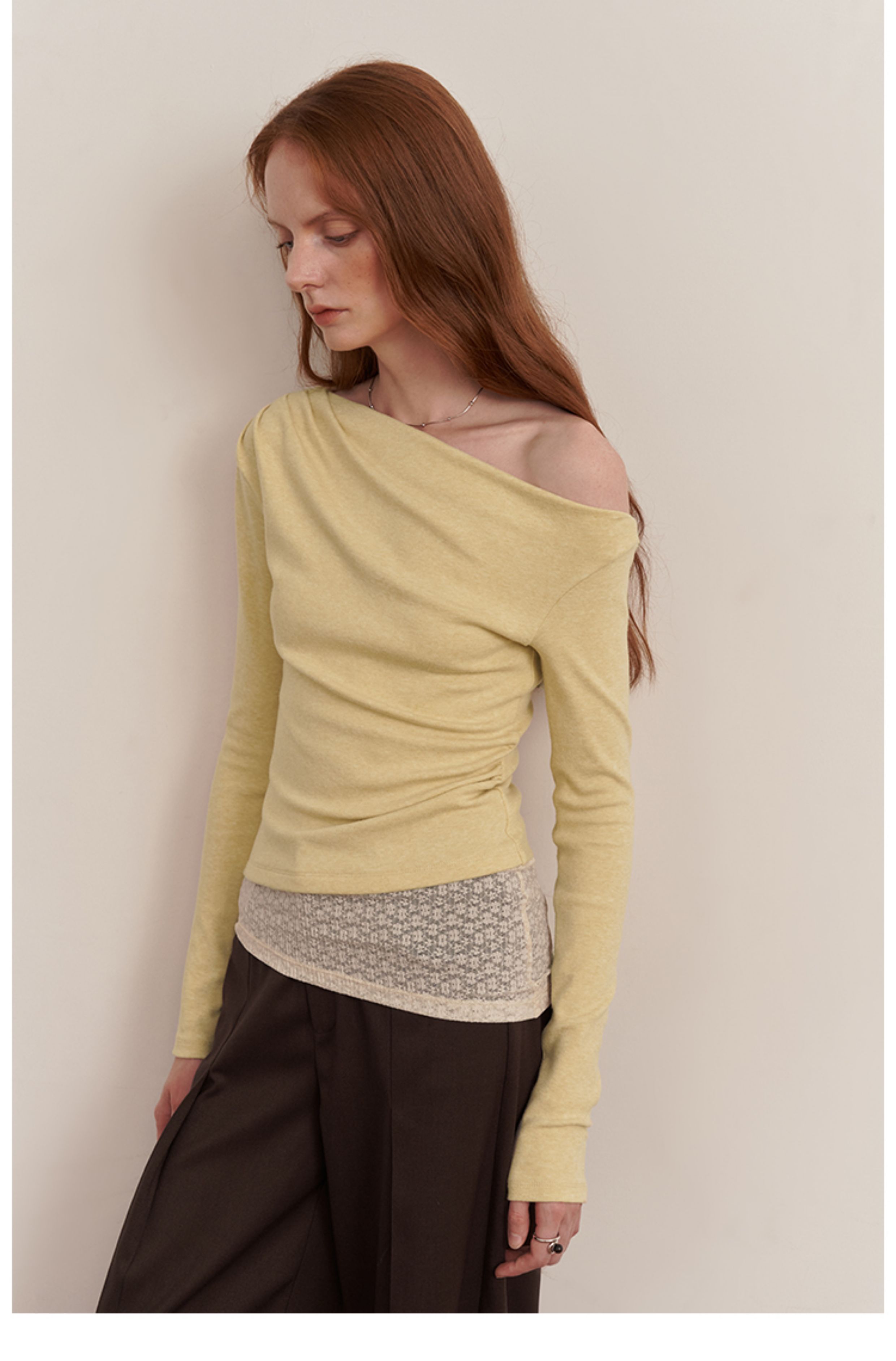 Someone Sometimes Original Lace Splicing Asymmetrical Waist-Cinching Faux Cashmere Feel Swing Collar Knit T-Shirt