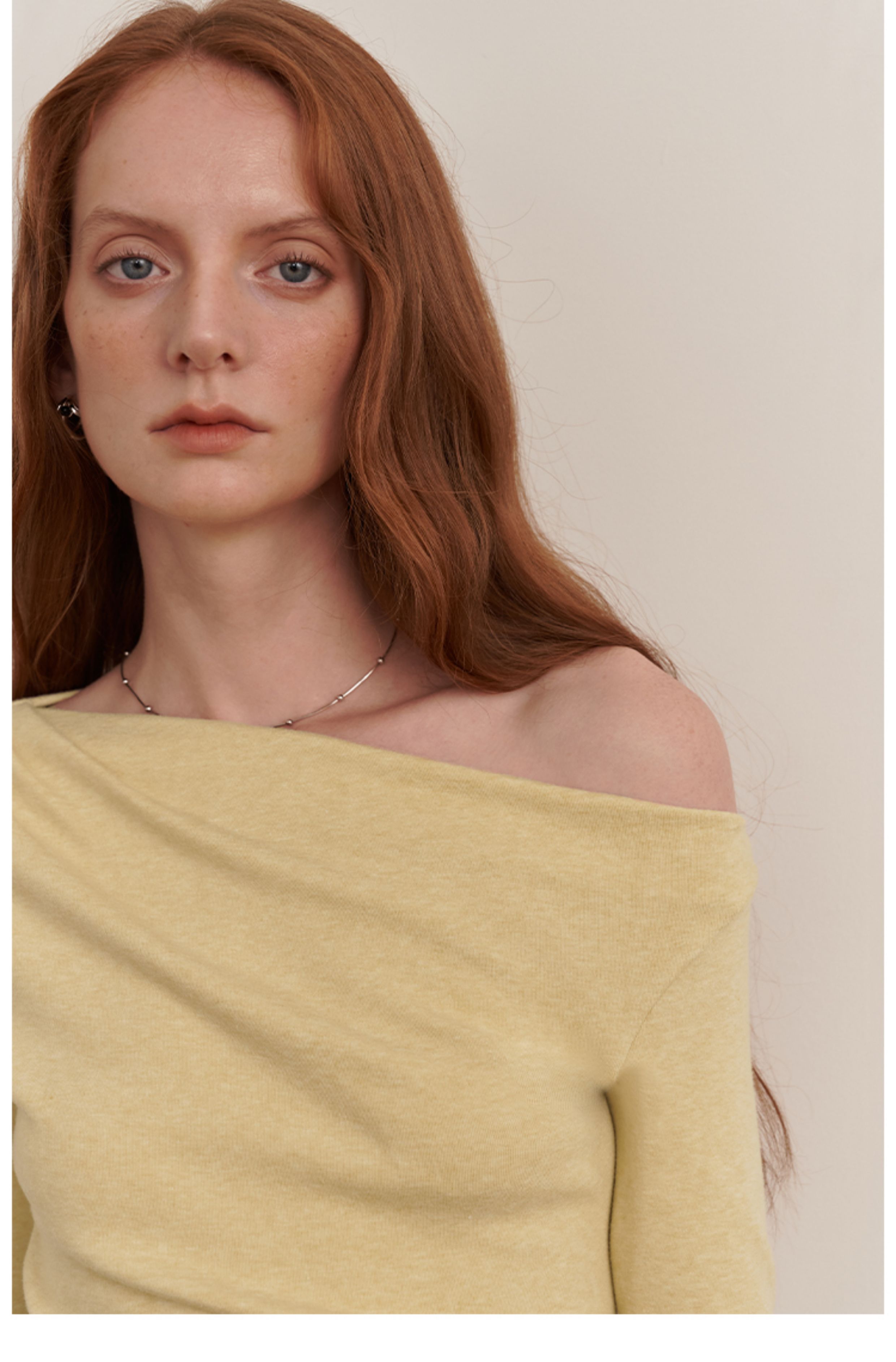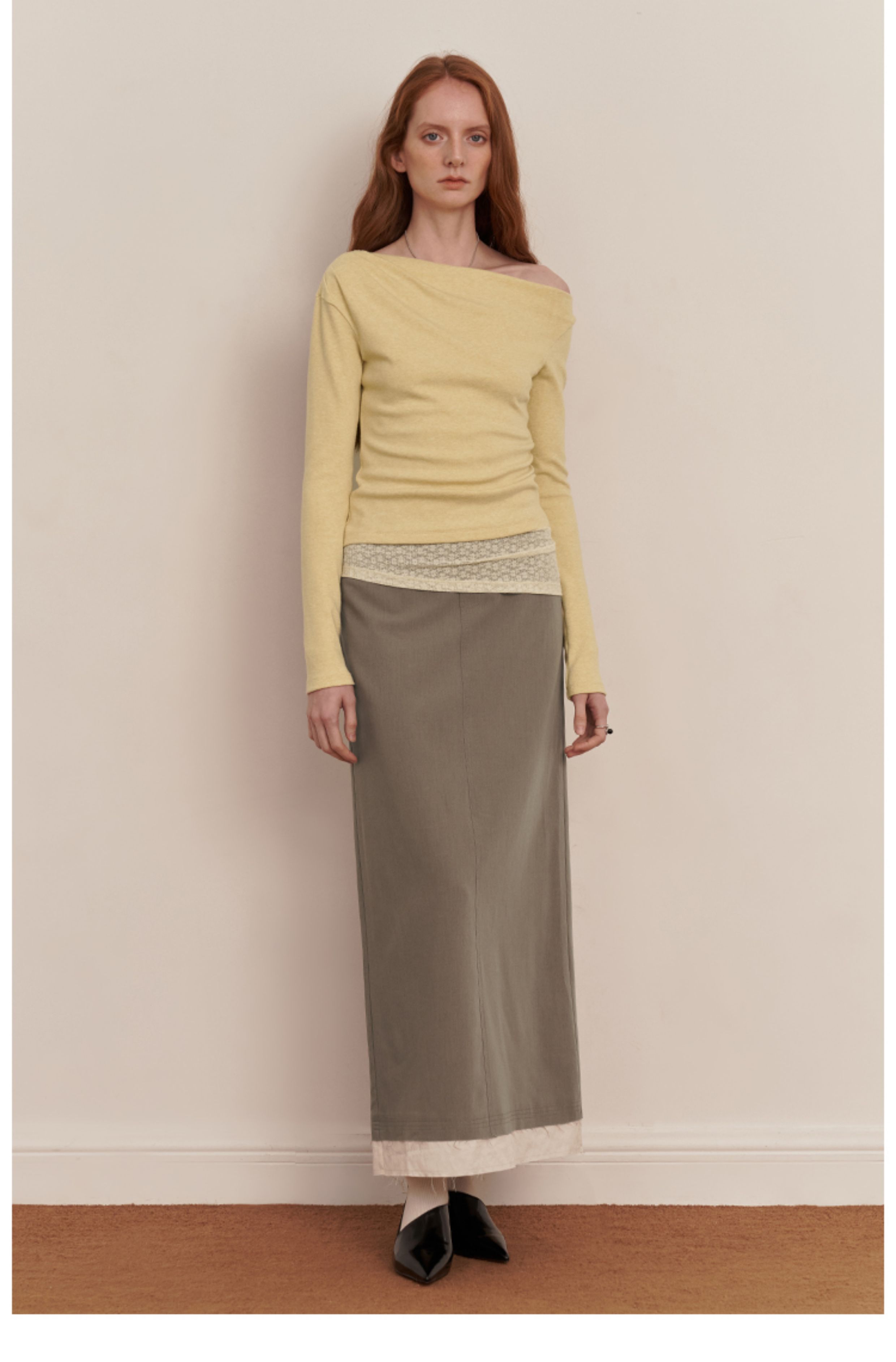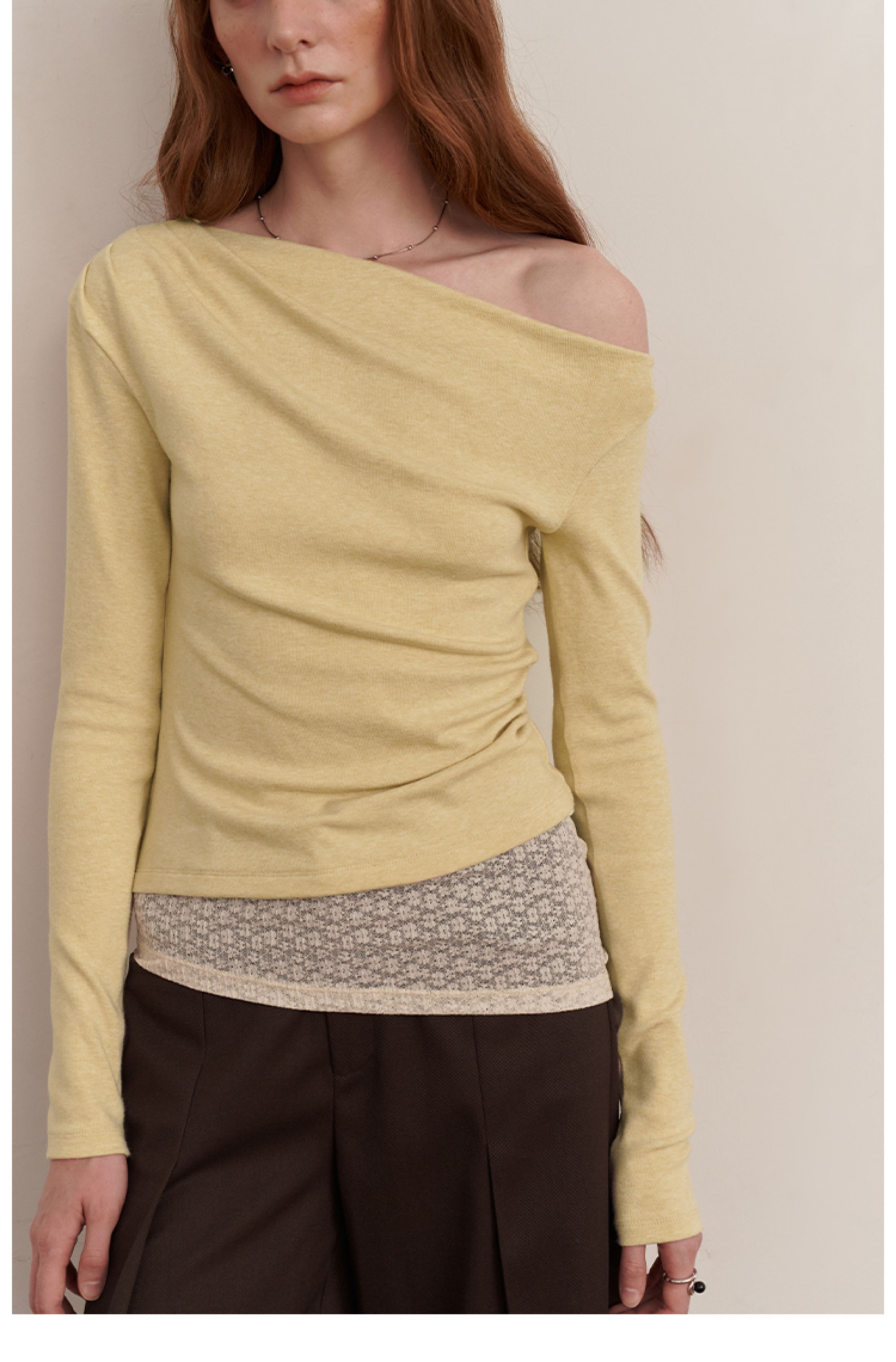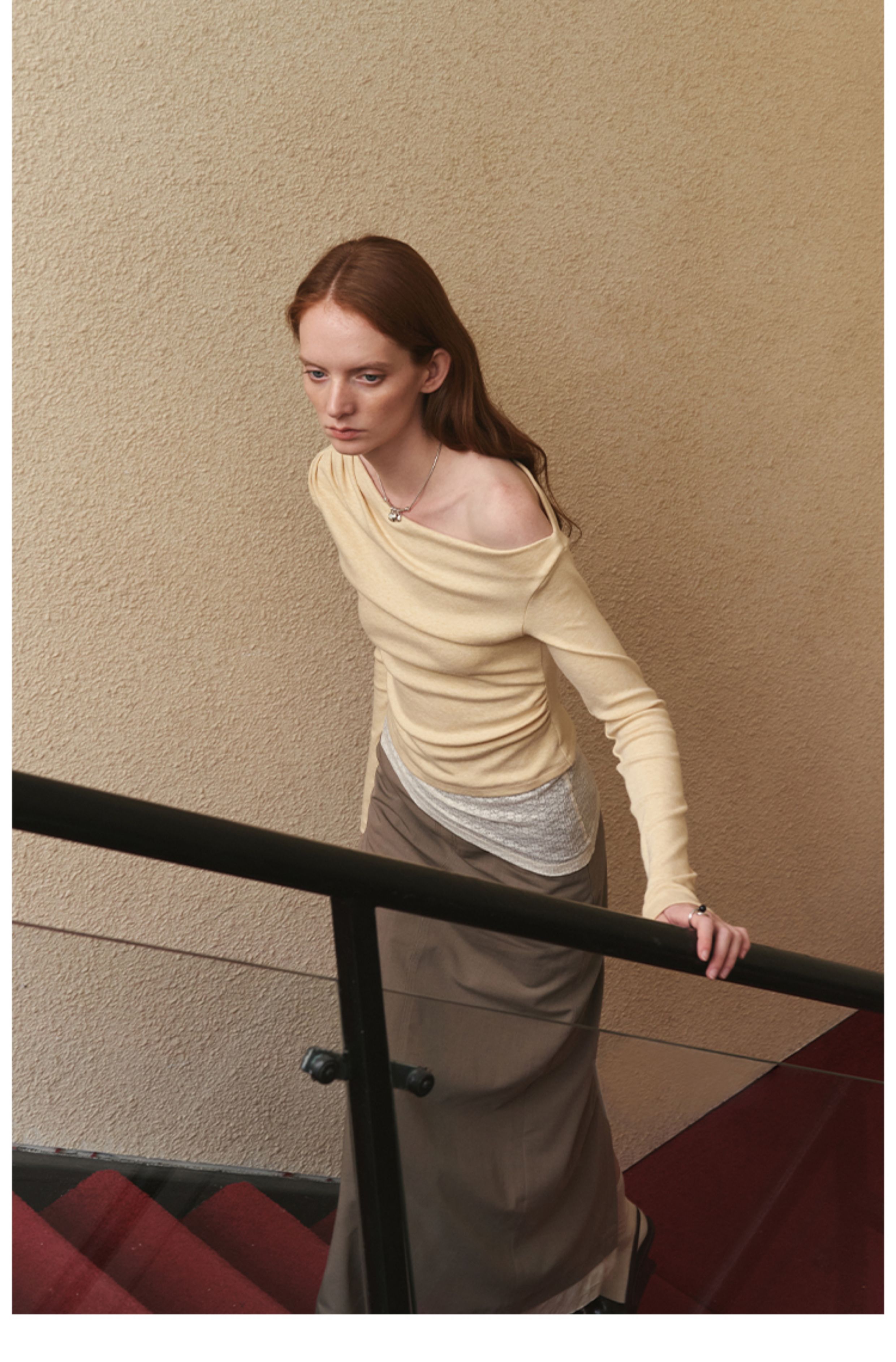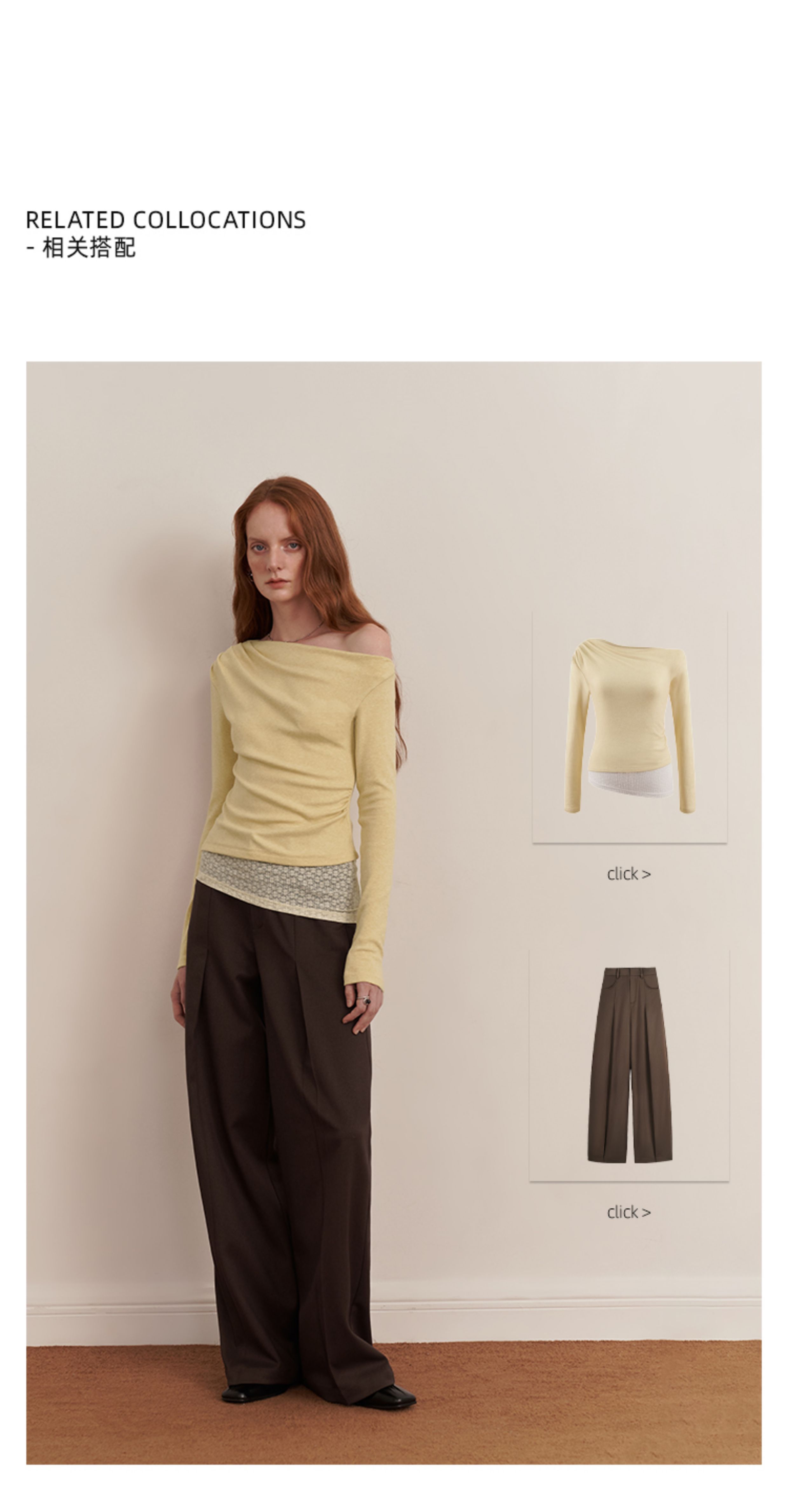 Someone Sometimes Original Lace Splicing Asymmetrical Waist-Cinching Faux Cashmere Feel Swing Collar Knit T-Shirt