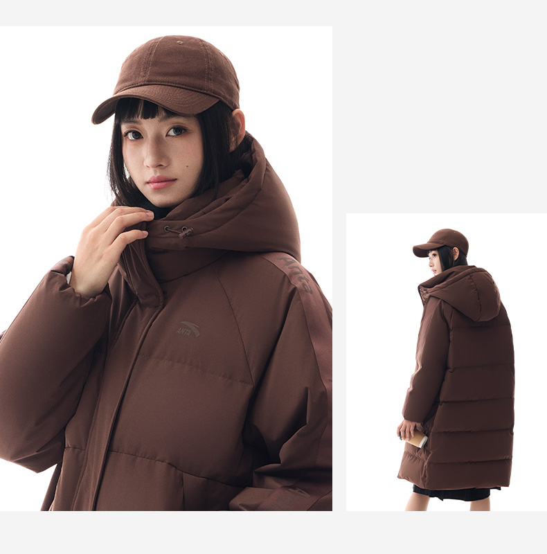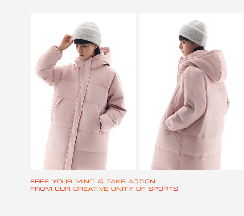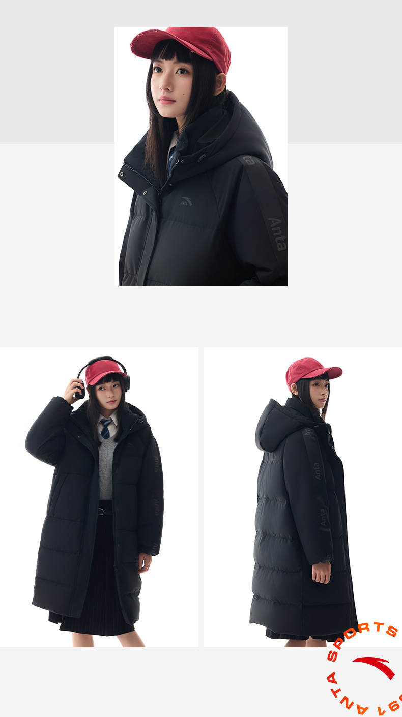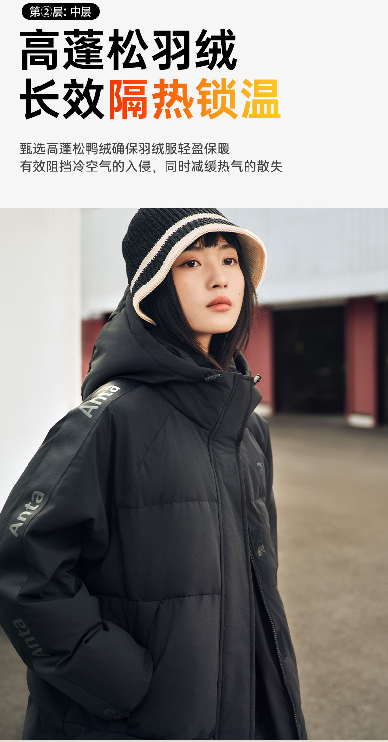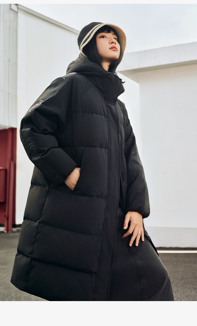 Anta Quick-Warm down Jacket | Four-Proof Mid-Length down Jacket for Women, Winter Warm Duck down Coat, Casual Trendy Cotton Jacket