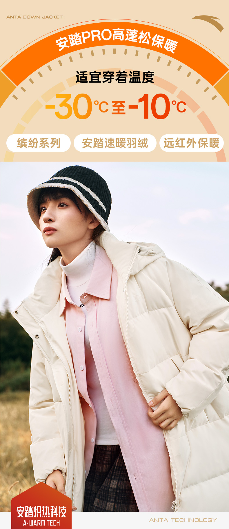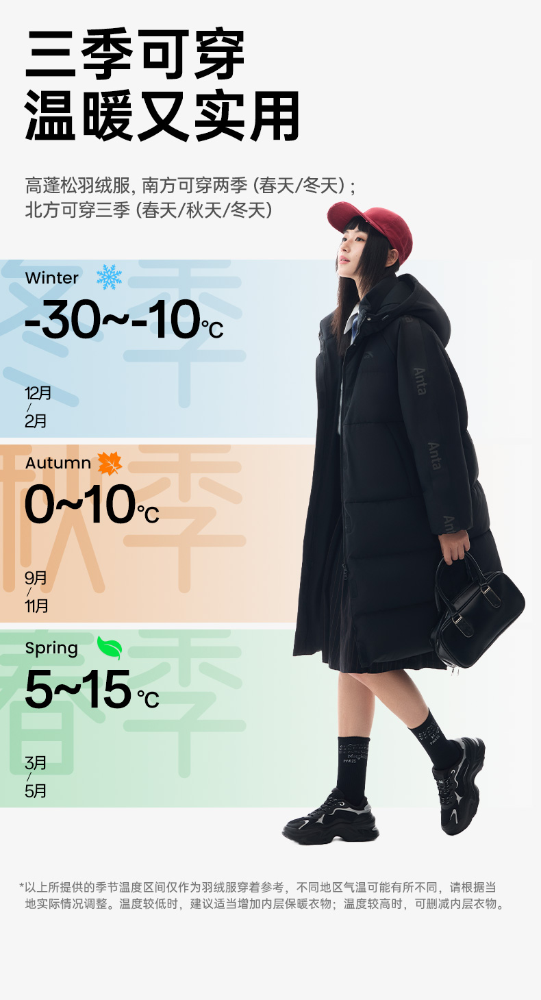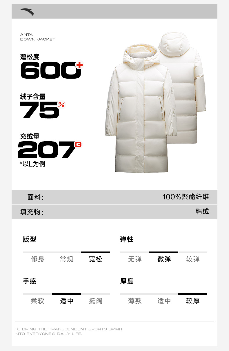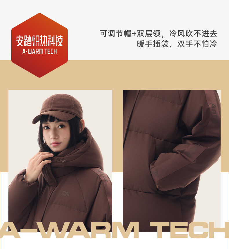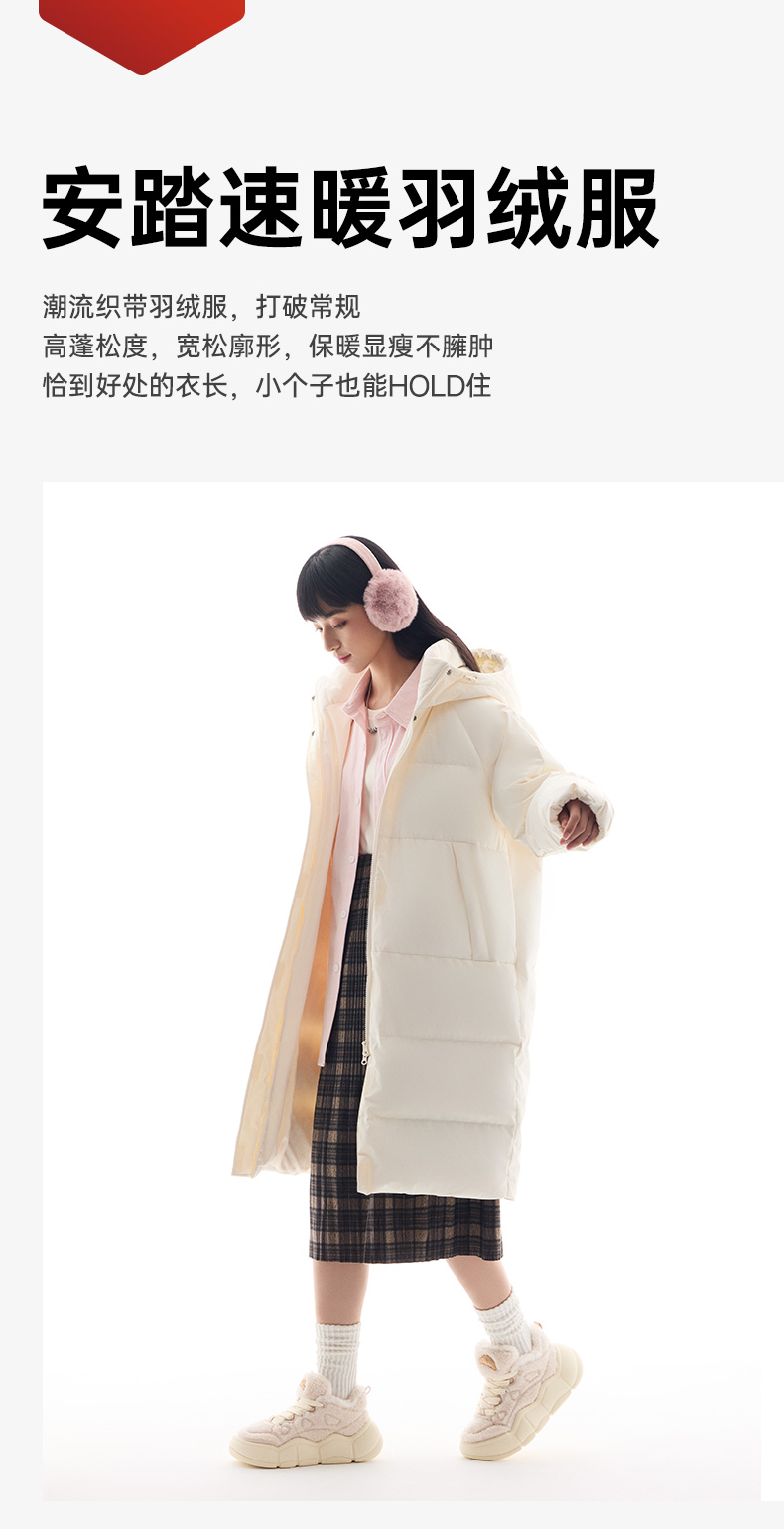 Anta Quick-Warm down Jacket | Four-Proof Mid-Length down Jacket for Women, Winter Warm Duck down Coat, Casual Trendy Cotton Jacket