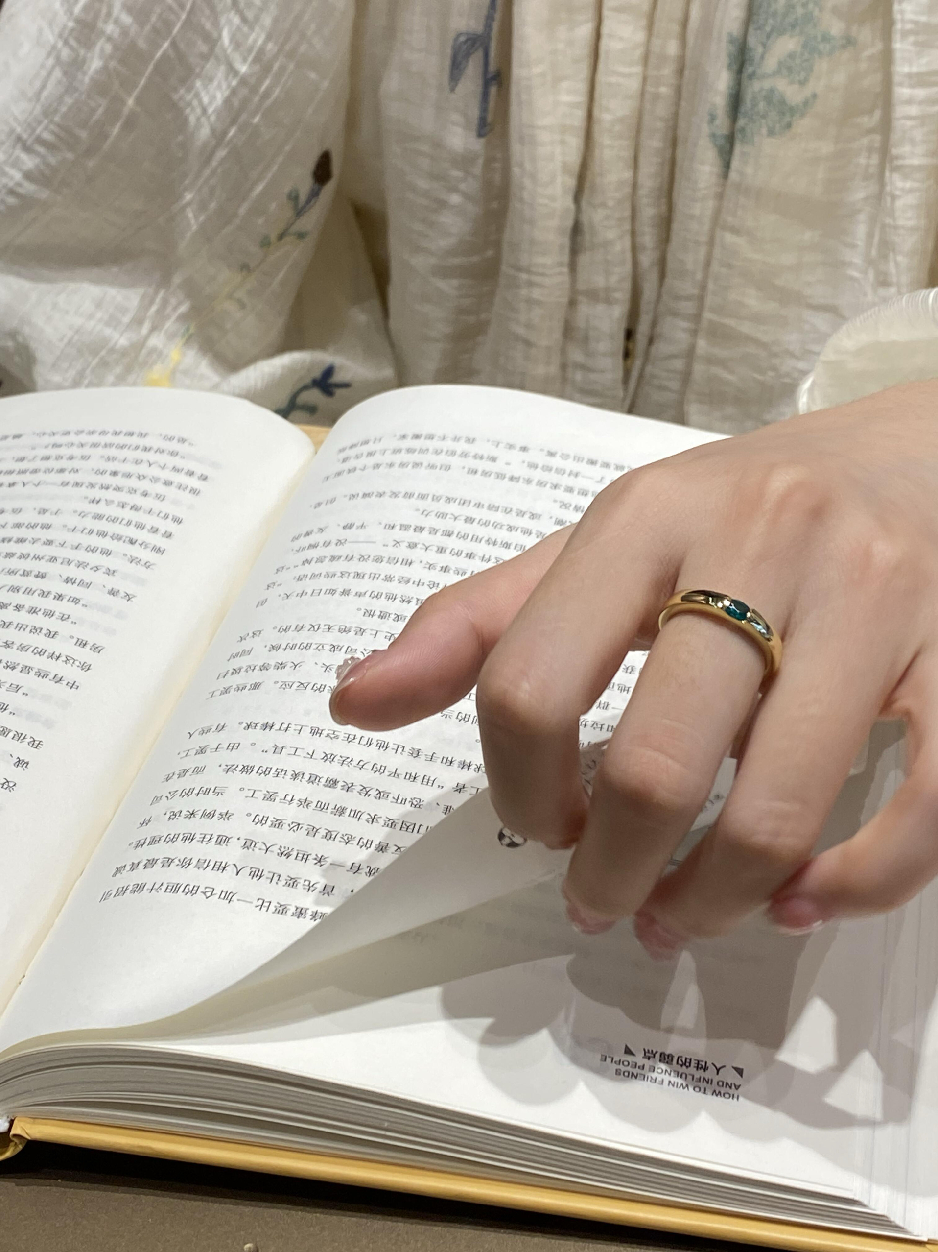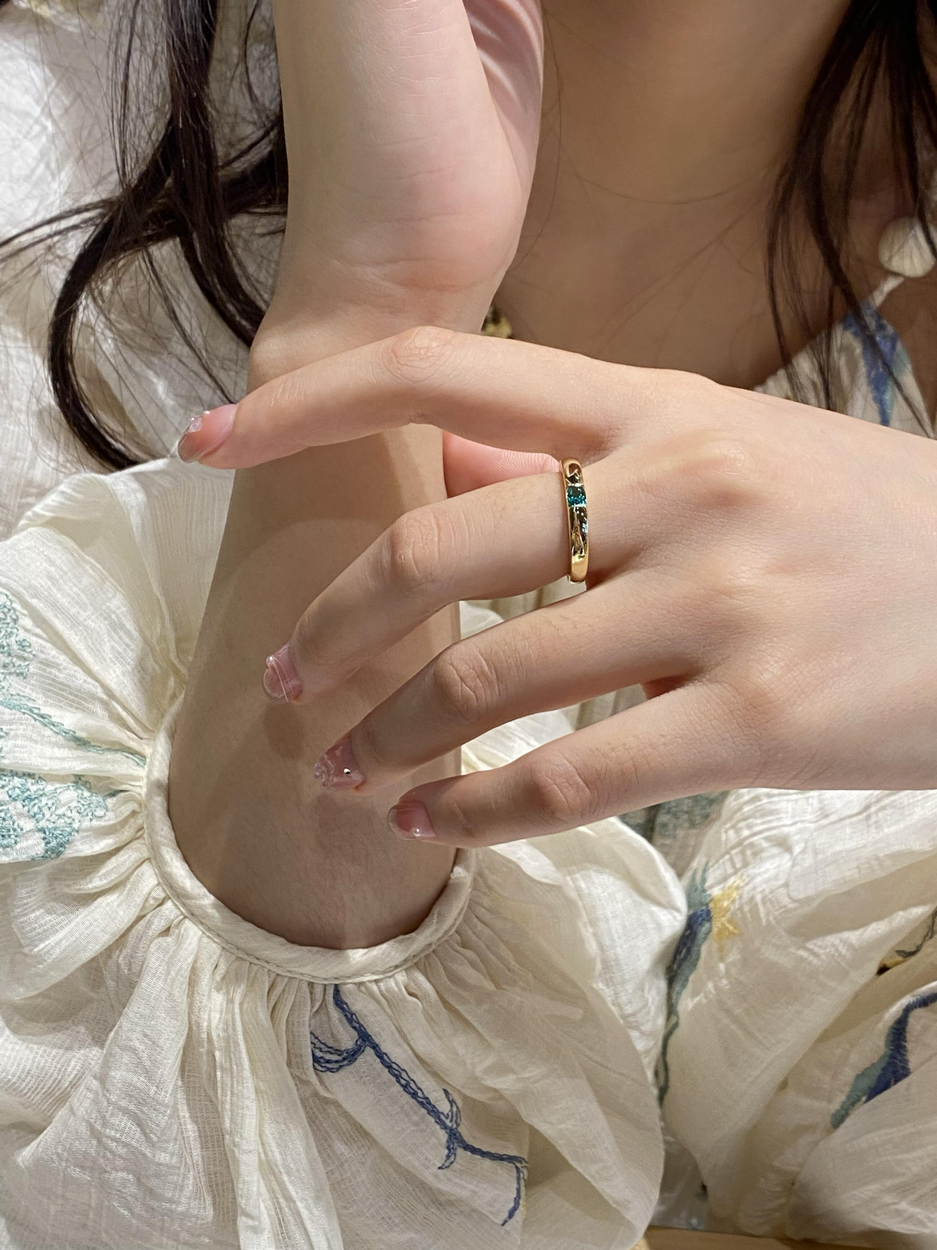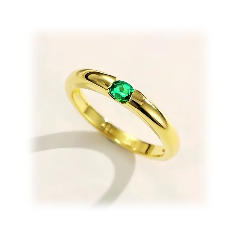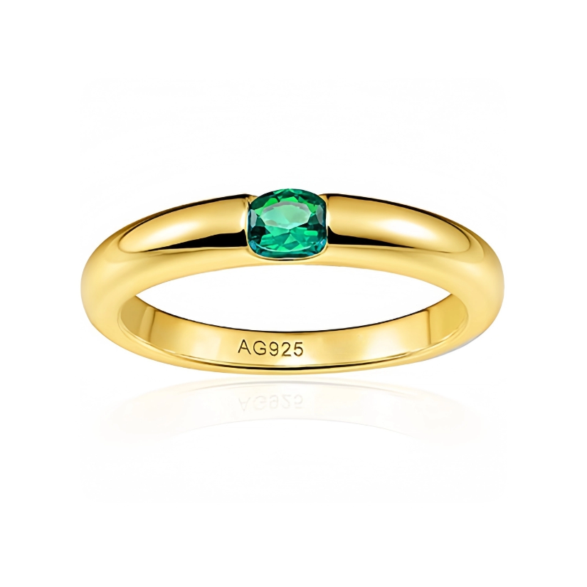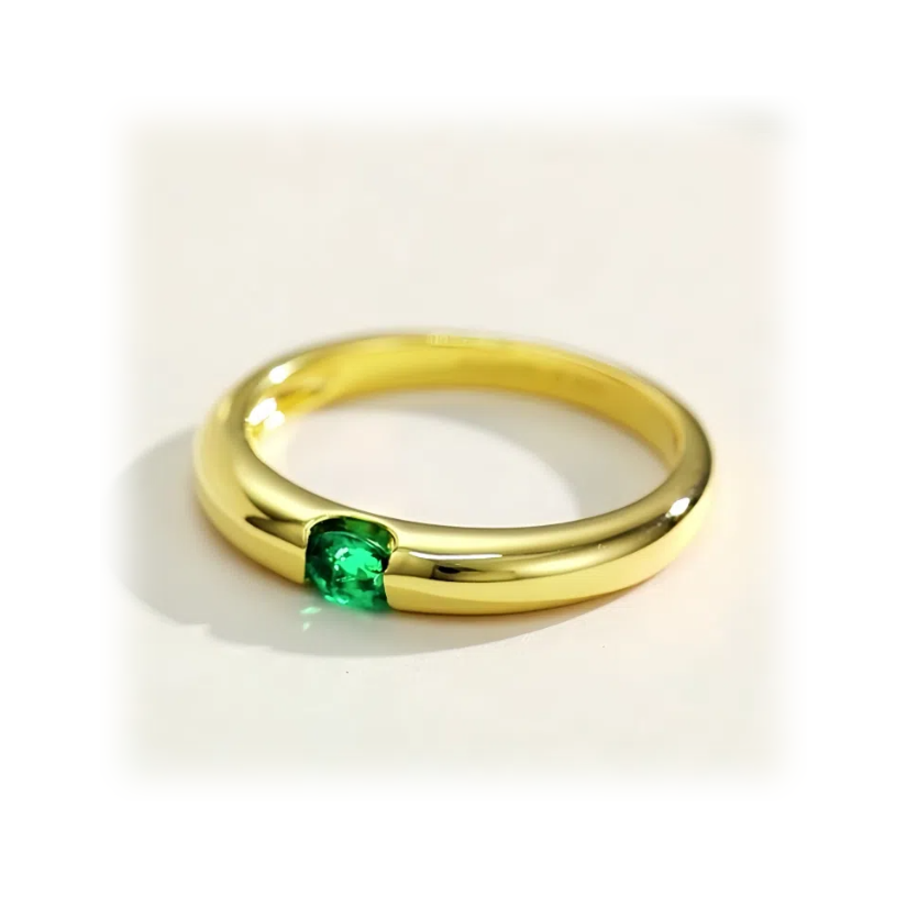 Cultivated Emerald Ring, Plain Gold Ring, Minimalist Style, ins Style Silver Plated with 18K Gold, Light Luxury High-End Couple Rings