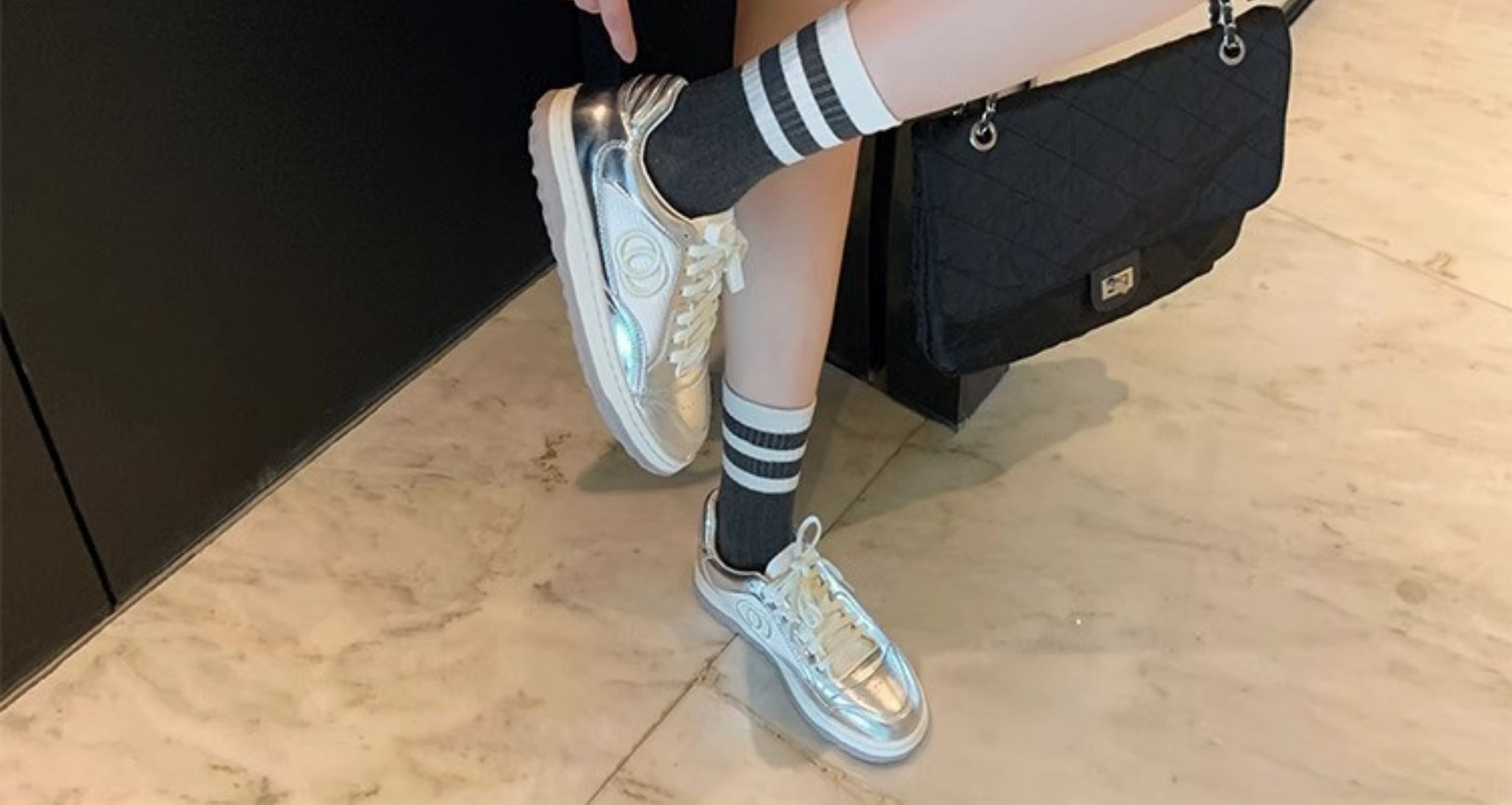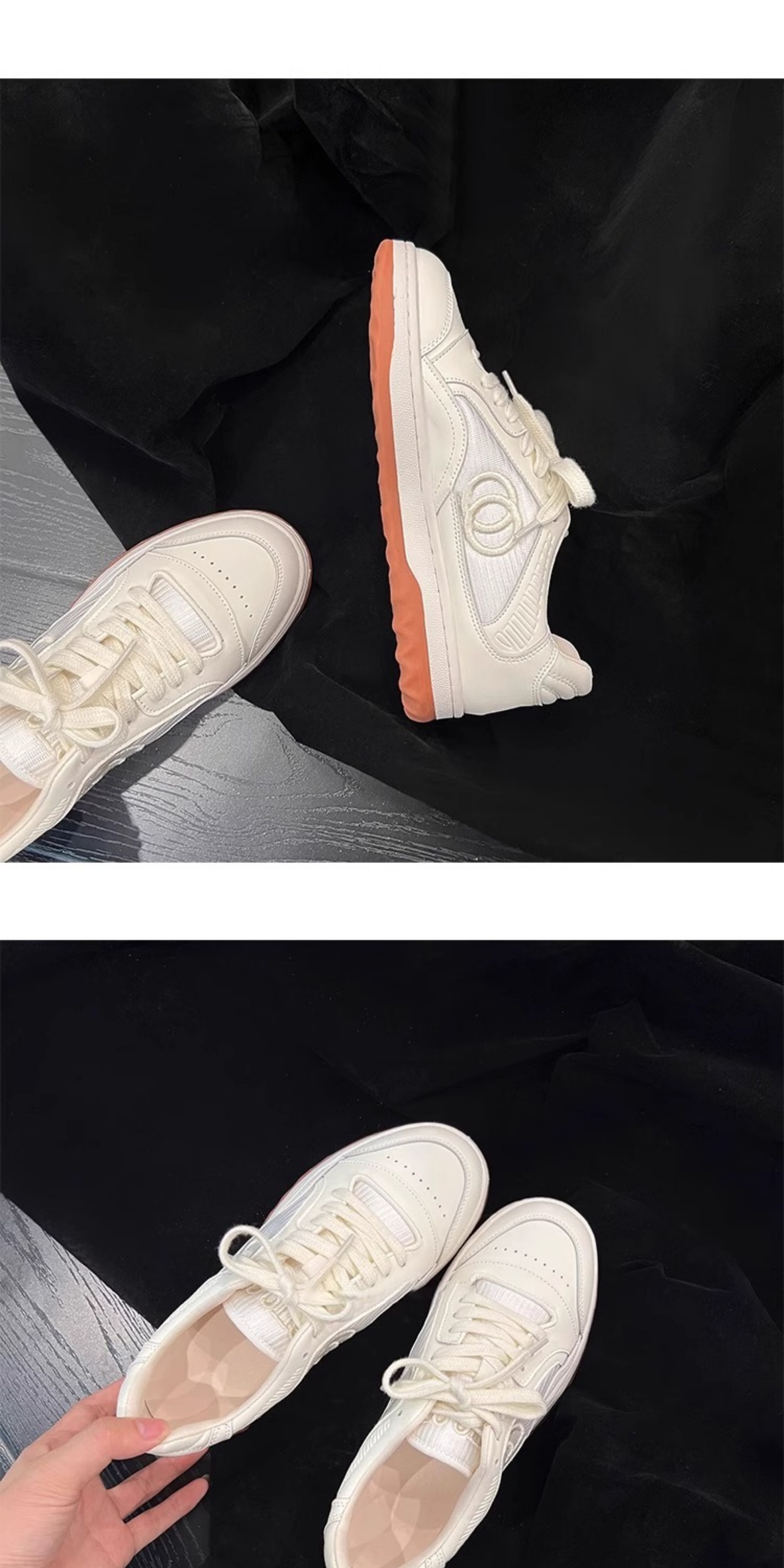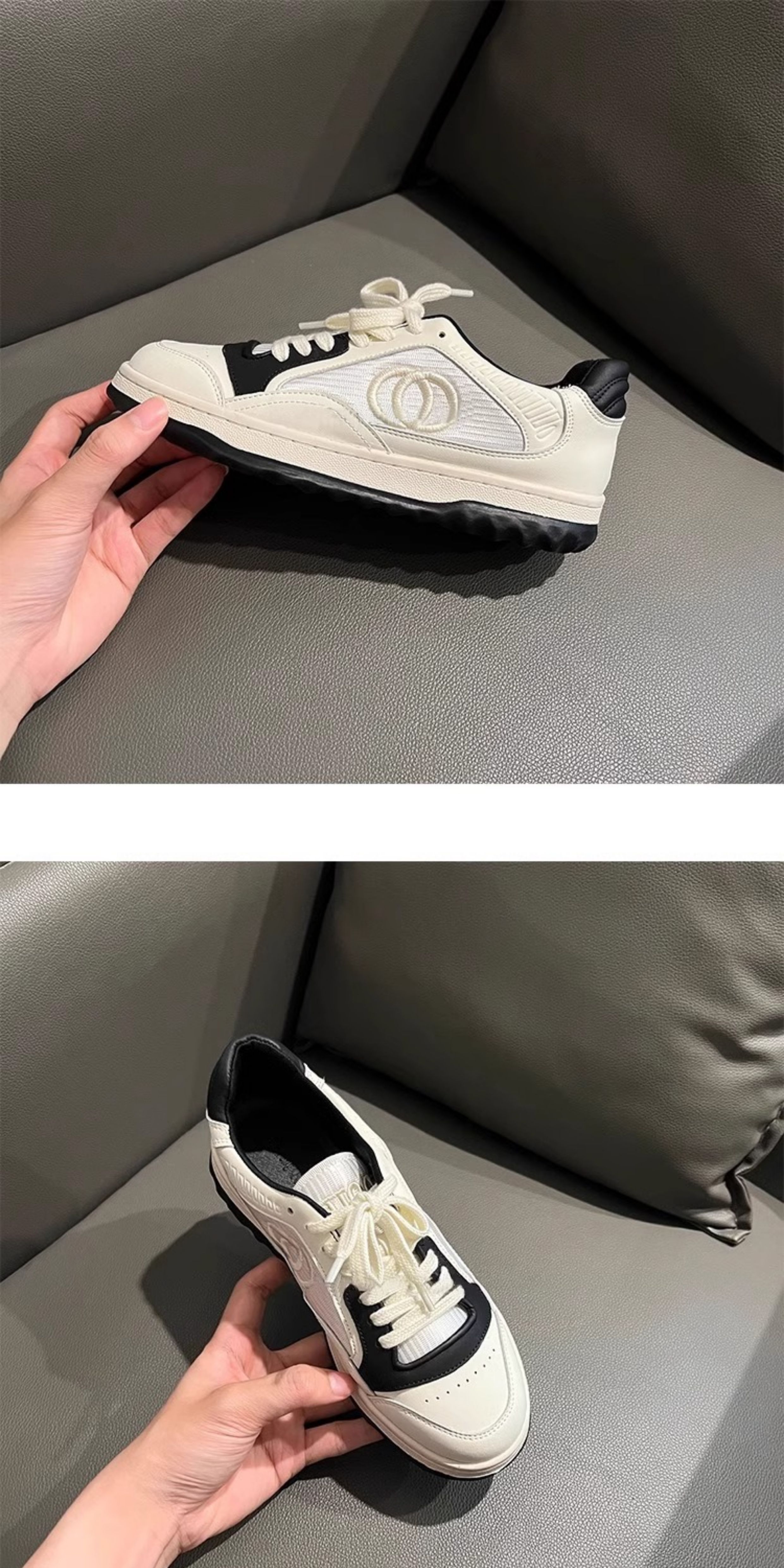 Hong Kong Genuine Leather White Retro Chanel-Style Thick-Soled Sneakers for Women, Versatile White Shoes, 2025 New Casual Sports Shoes