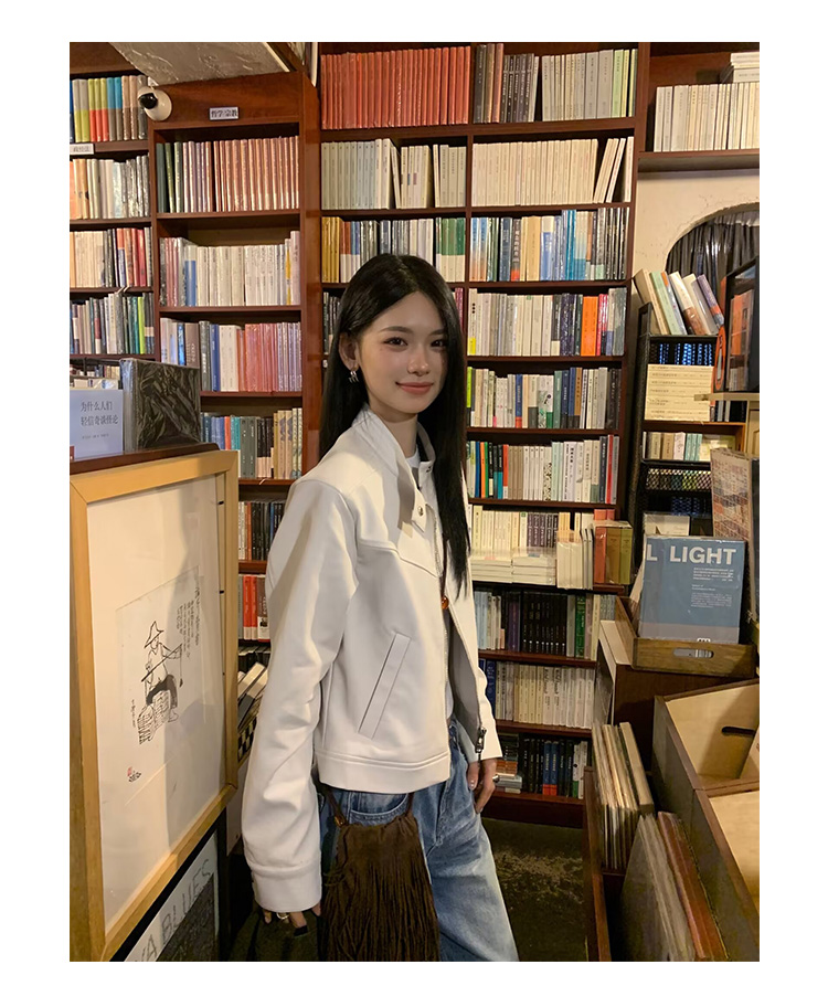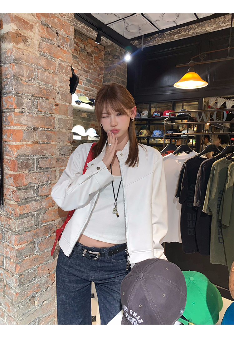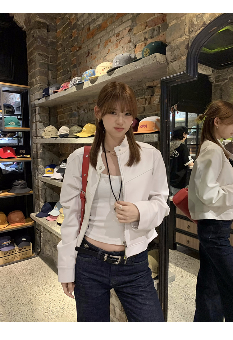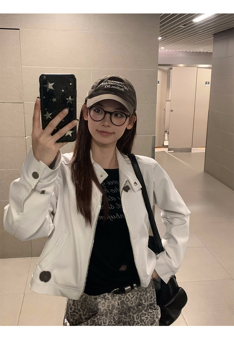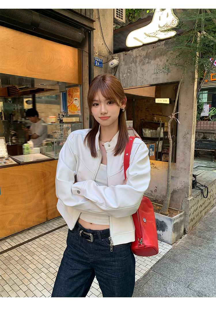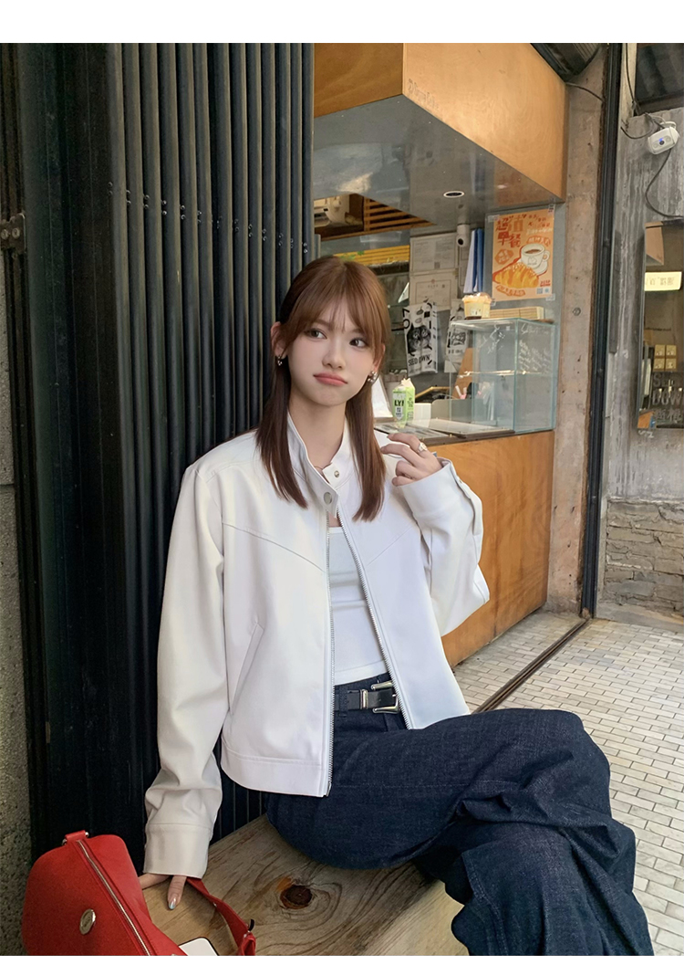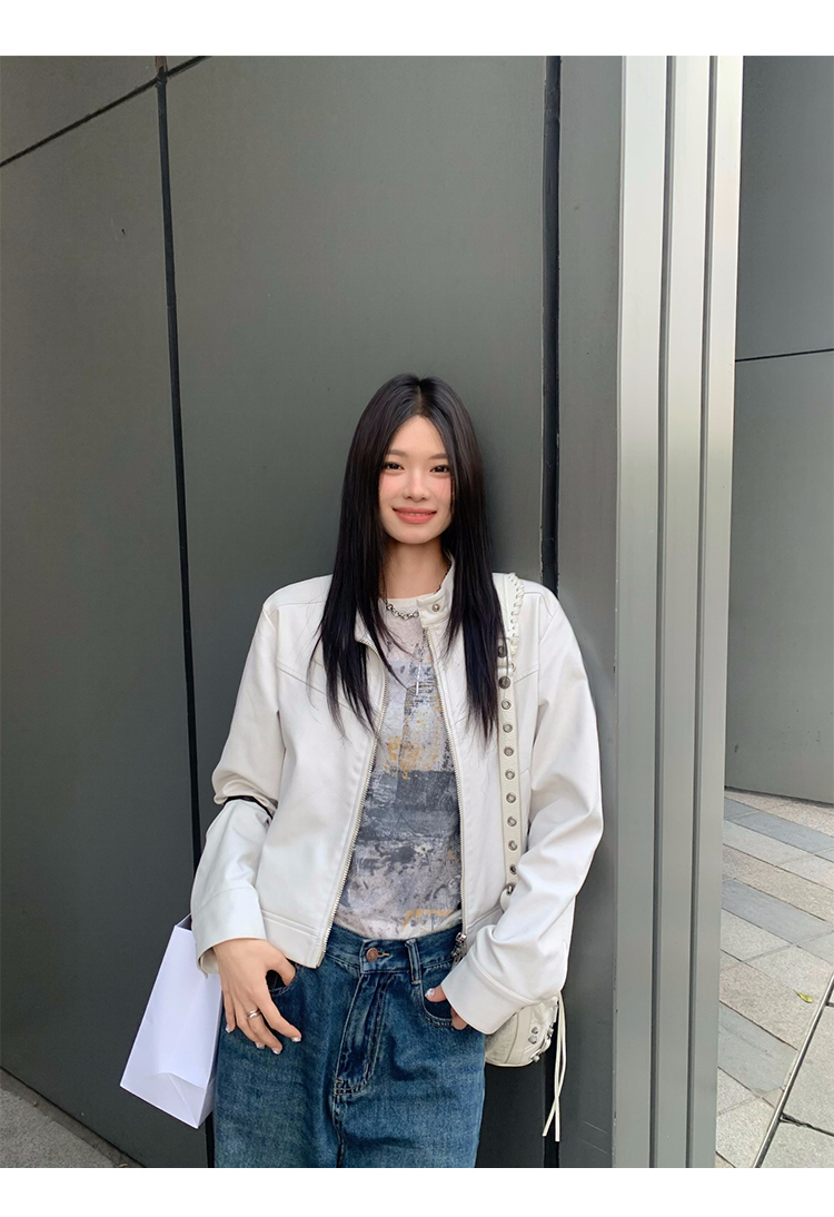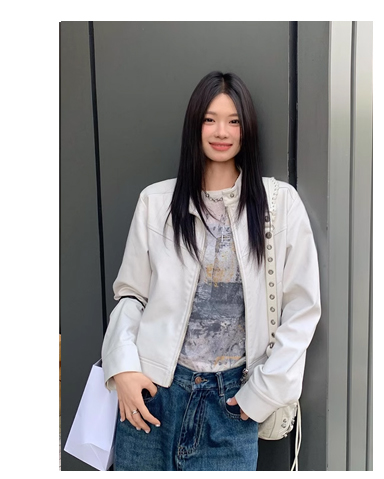 Big Ears Lumoder White Leather Jacket for Women, Spring and Autumn Thin Style, Niche Design, Loose Casual Korean Style Short Coat